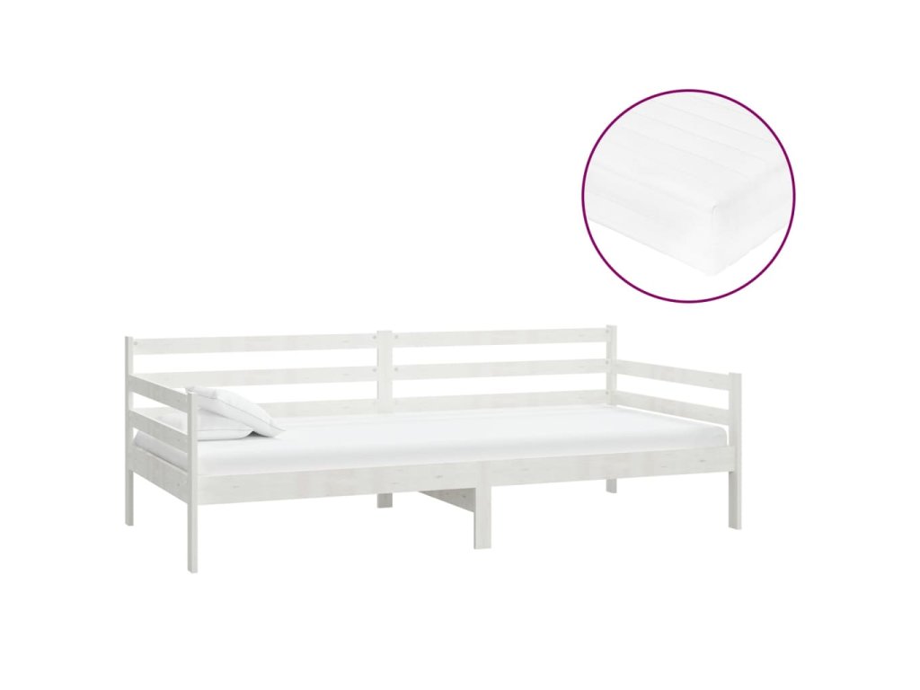 Denní postel s matrací 90 x 200 cm bílá masivní borové dřevo 3083580
