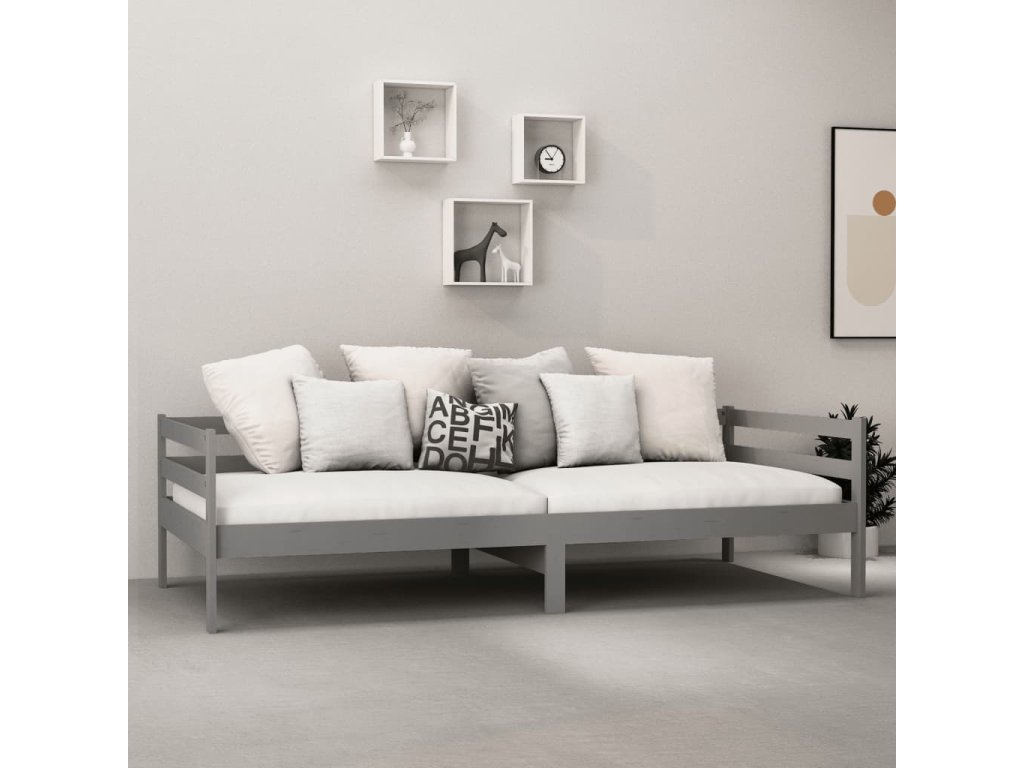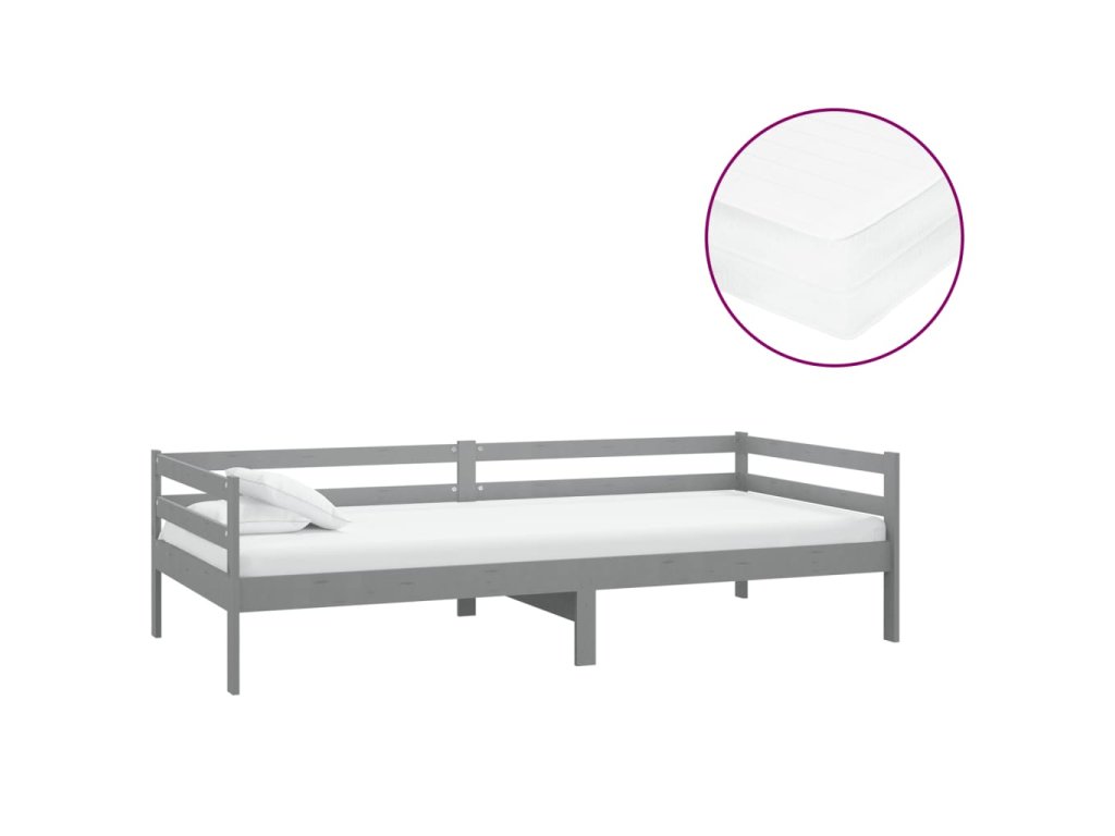 Denní postel s matrací 90 x 200 cm šedá masivní borové dřevo 3083571