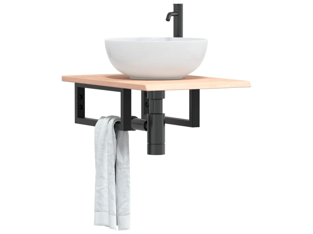 Deska pod umyvadlo nástěnná ocel a masivní dubové dřevo 3302537
