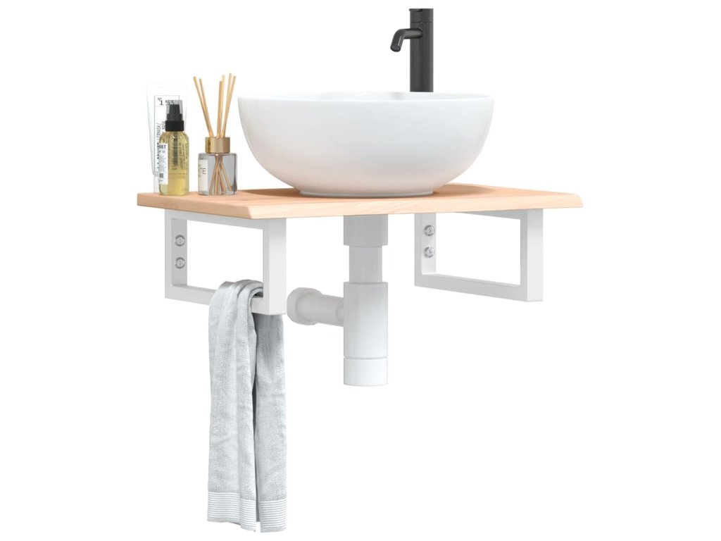 Deska pod umyvadlo nástěnná ocel a masivní dubové dřevo 3302540