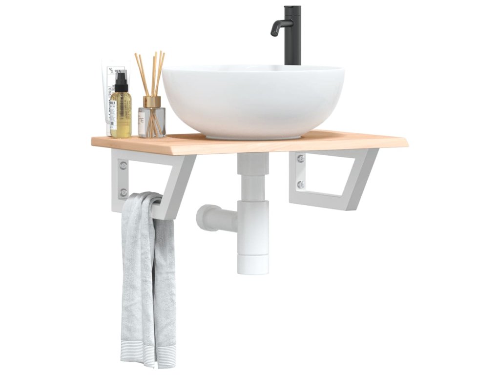 Deska pod umyvadlo nástěnná ocel a masivní dubové dřevo 3302542