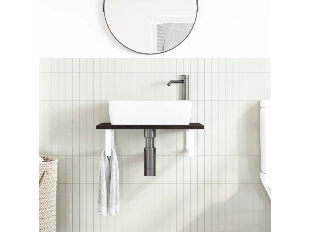 Deska pod umyvadlo nástěnná ocel a masivní dubové dřevo 3302580