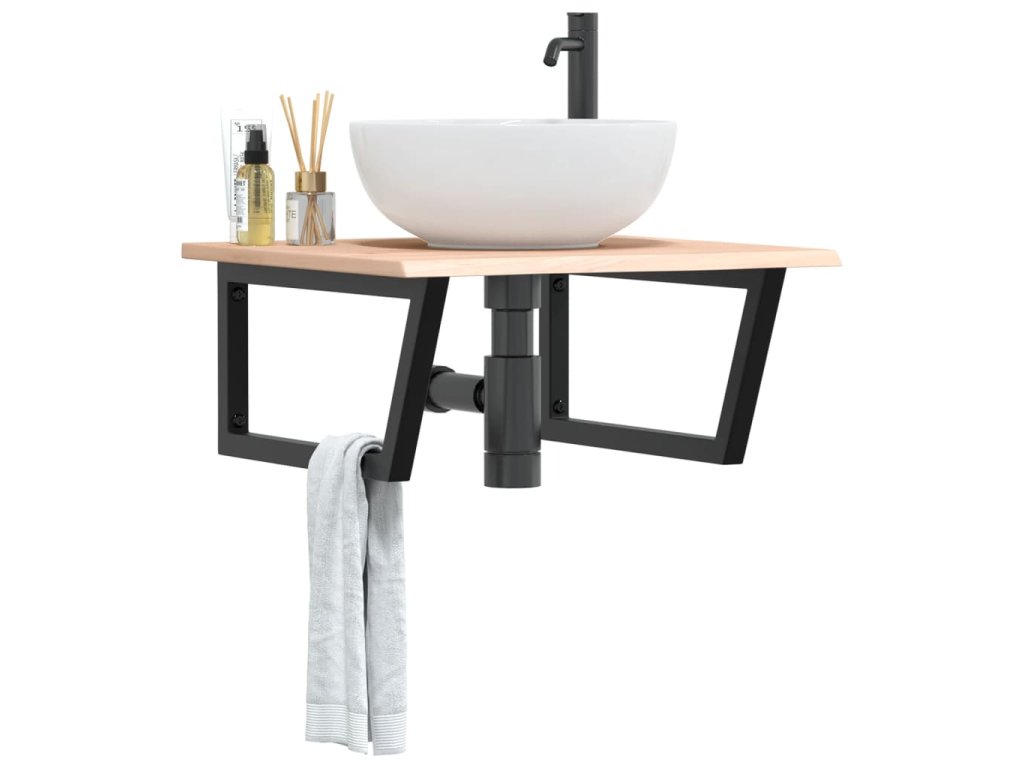 Deska pod umyvadlo nástěnná ocel a masivní dubové dřevo 3302631