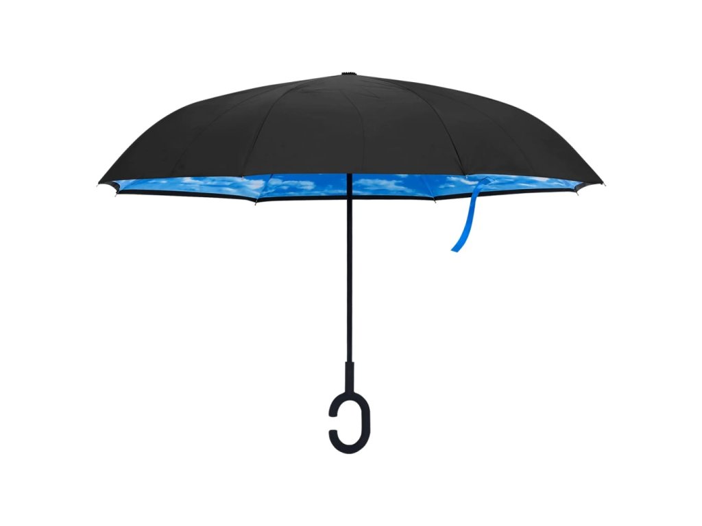 Tento deštník je vyroben z materiálu 190T PG, takže je odolný vůči vodě. Sklolaminátová žebra a kovové tyče zvyšují stabilitu. Vzhledem k obrácené konstrukci se deštník s rukojetí mnohem lépe nasazuje a vyndává z auta a zabraňuje odkapávání vody, takže vaše auto zůstane suché. Za deštivých dnů tak nemusíte mít deštník otevřený, aby vyschl, když si ho vezmete dovnitř. Na chodbě nebo v předsíni zabírá vždy méně místa.