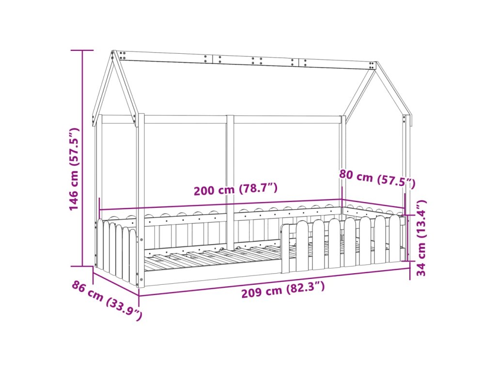 Dětská domečková postel 80 x 200 cm masivní borové dřevo 850689