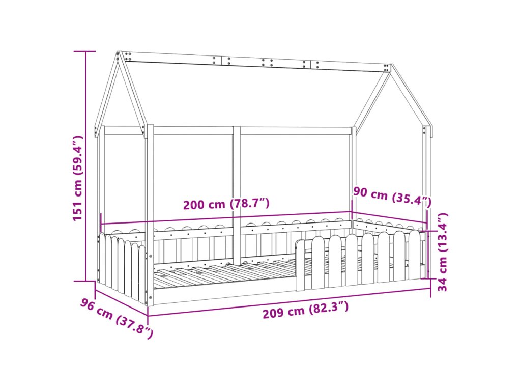 Dětská domečková postel bílá 90 x 200 cm masivní borové dřevo 850687