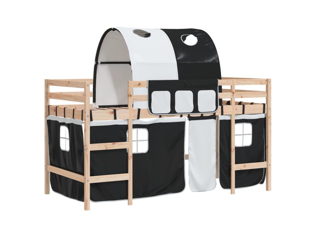 Dětská patrová postel s tunelem bílá a černá 80x200 cm borovice 3206982