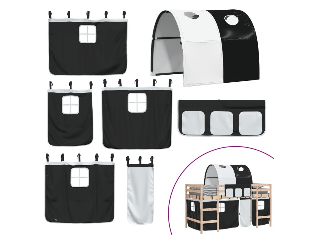 Dětská patrová postel s tunelem bílá a černá 90x190 cm borovice 3207000