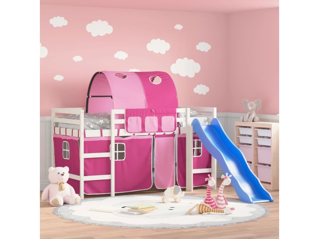 Dětská patrová postel s tunelem růžová 80x200 cm masiv borovice 3207041