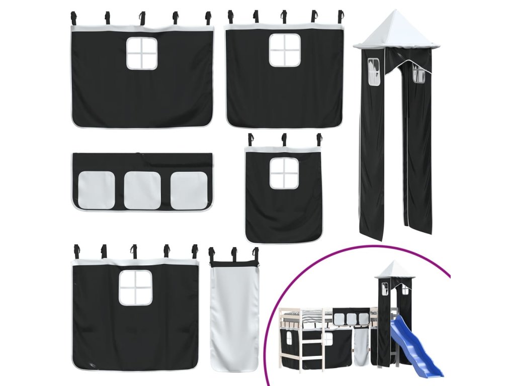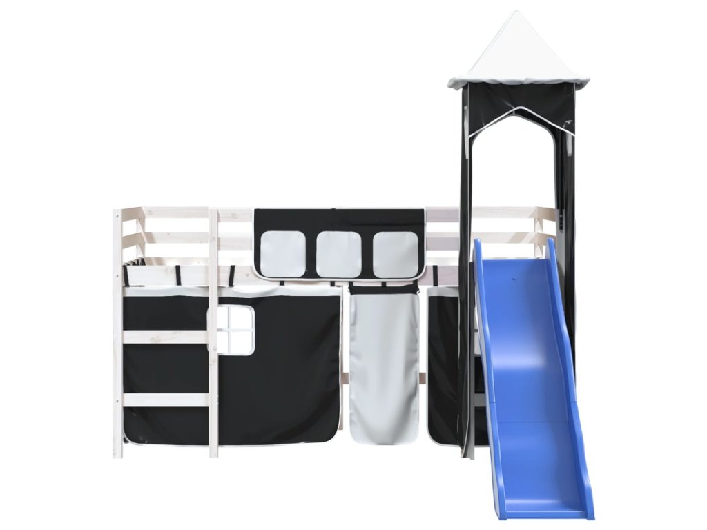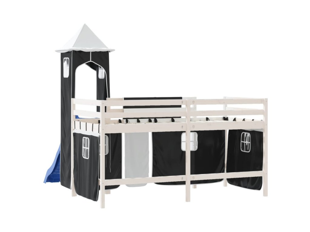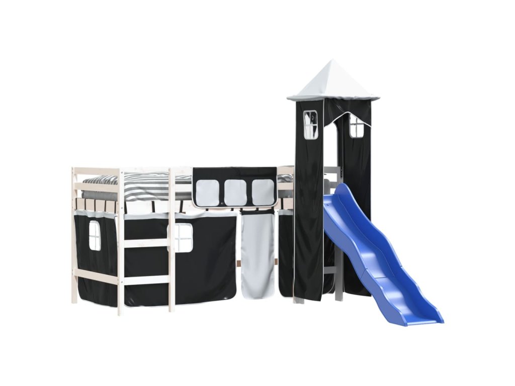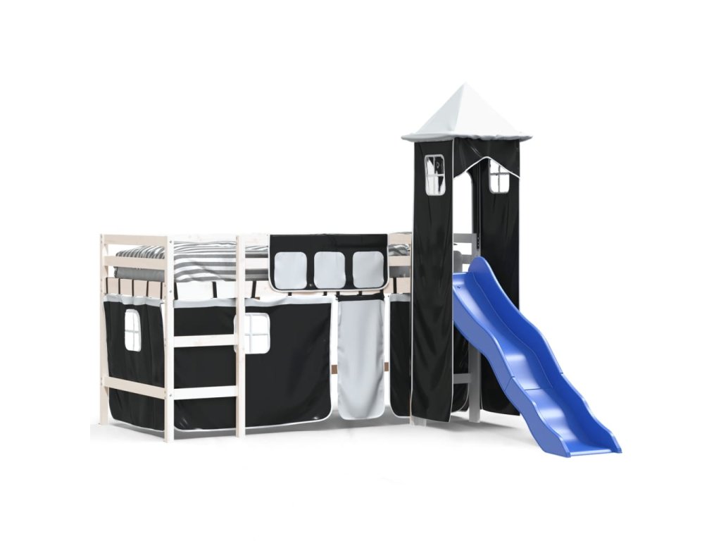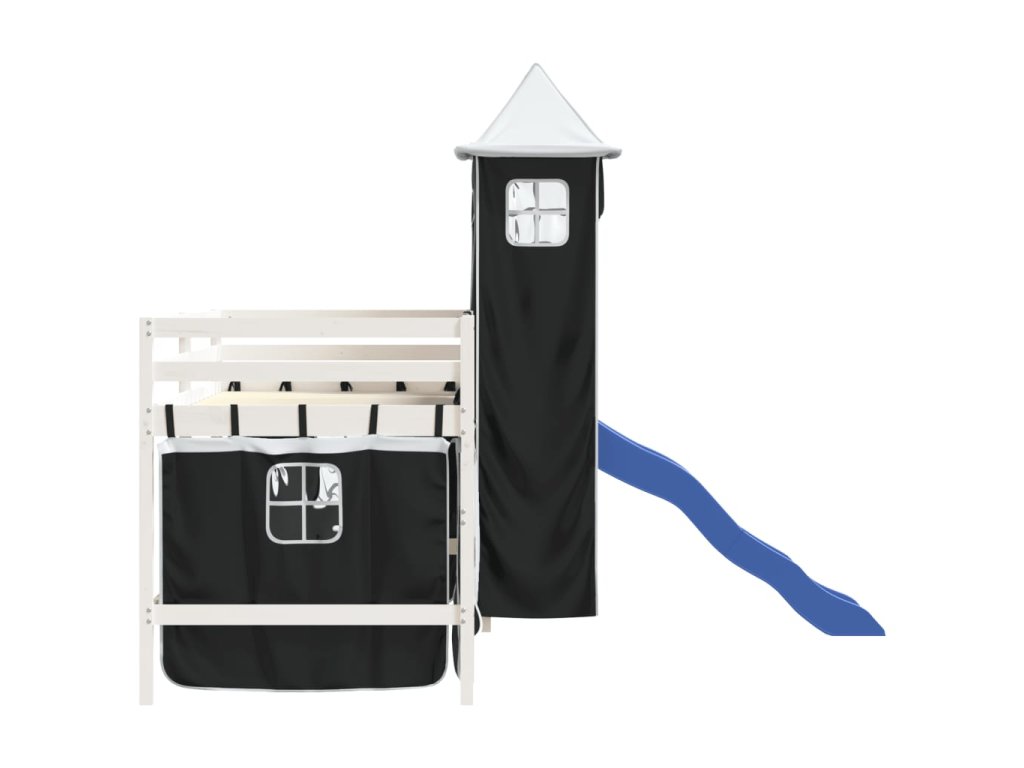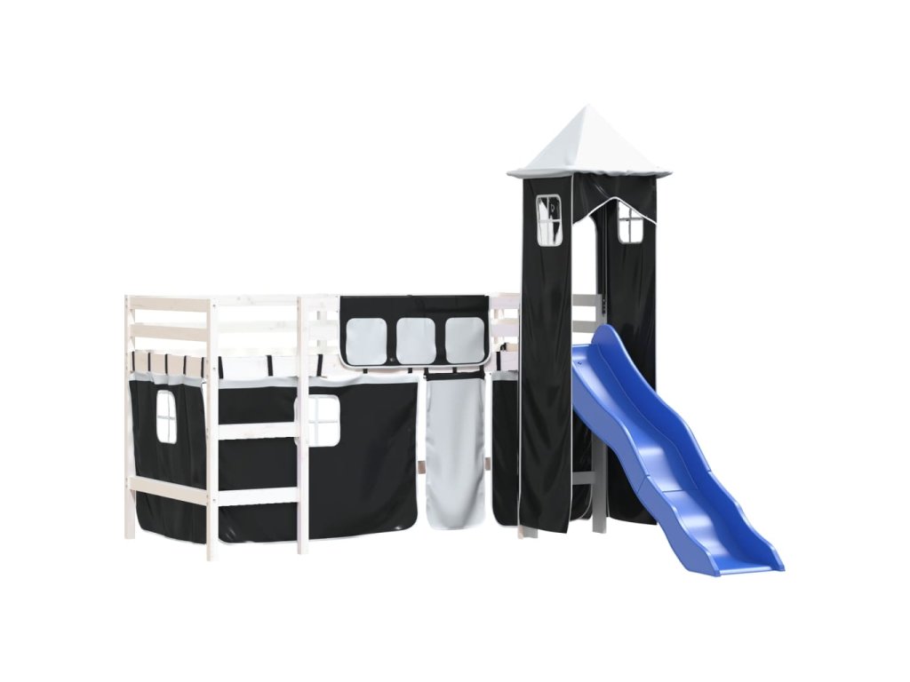 Dětská patrová postel s věží bílá a černá 80 x 200 cm borovice 3207066