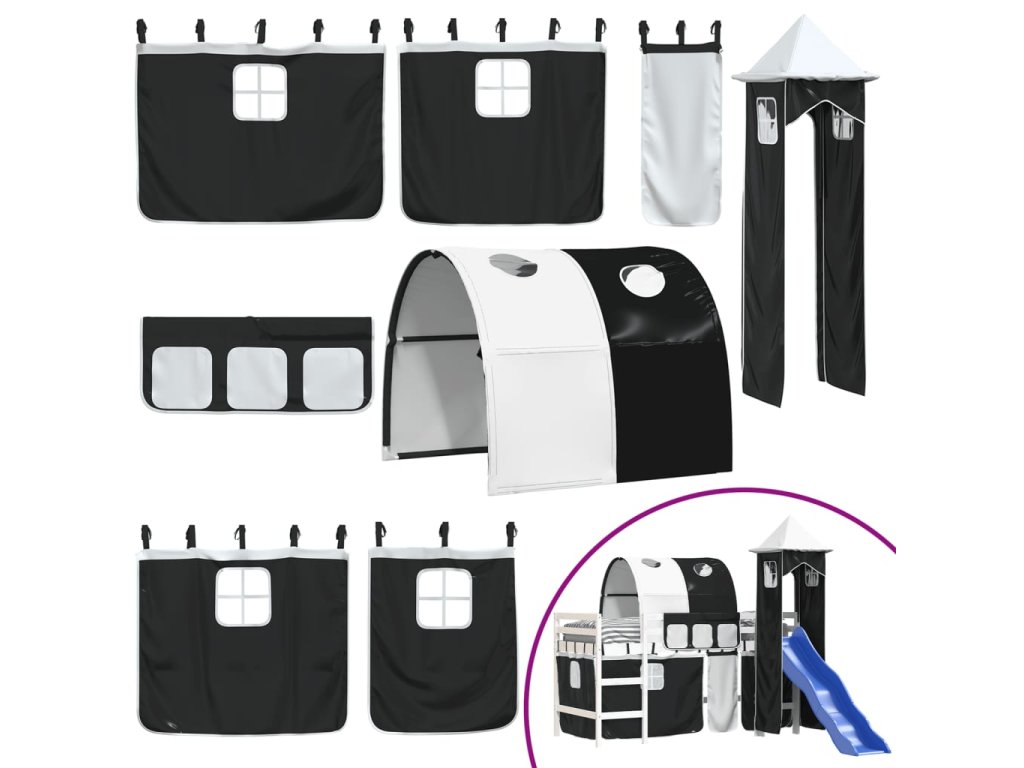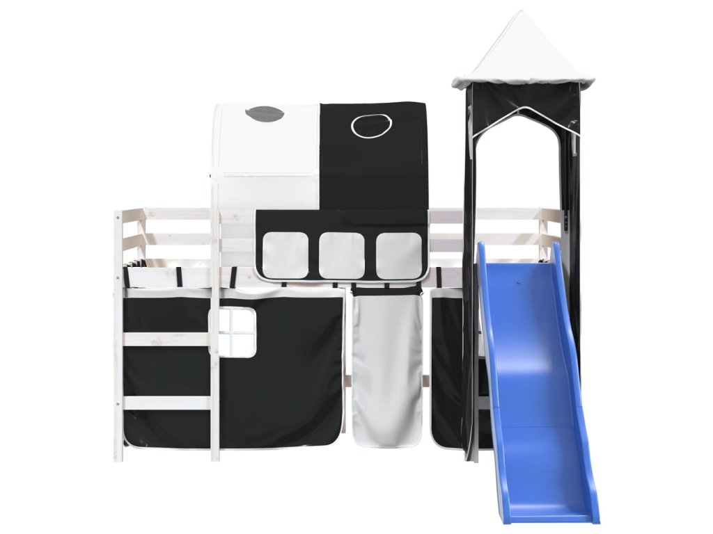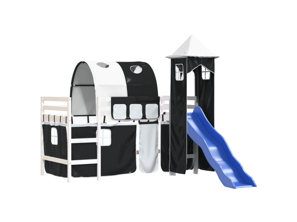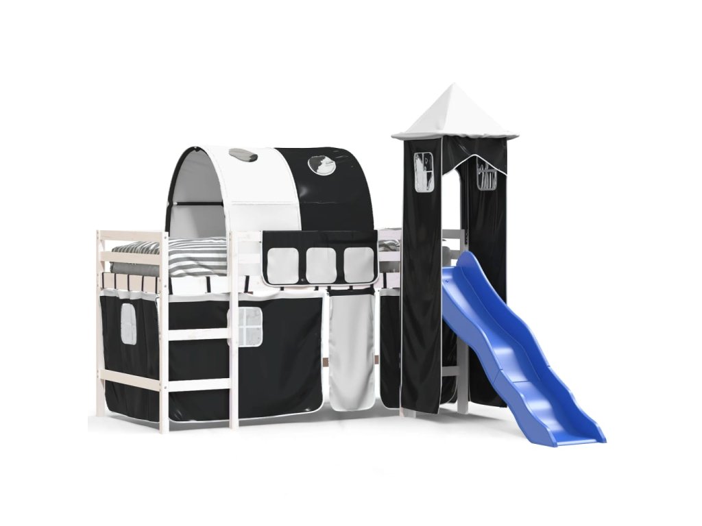 Dětská patrová postel s věží bílá a černá 80 x 200 cm borovice 3207093