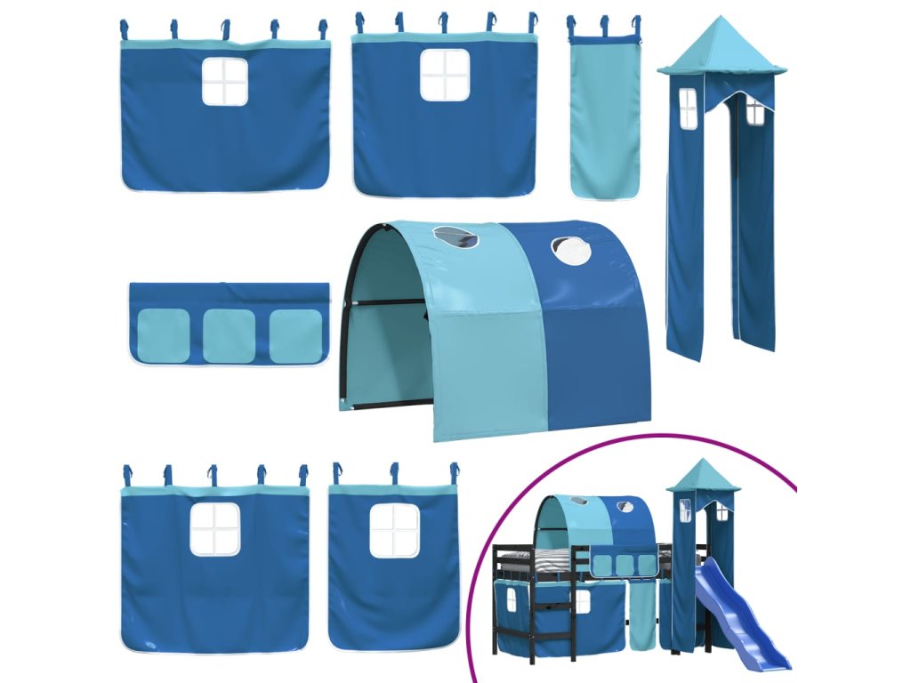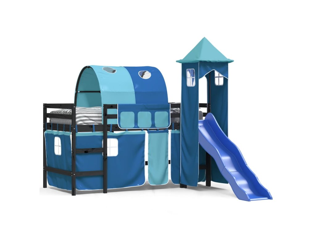 Dětská patrová postel s věží modrá 80 x 200 cm masiv borovice 3207097