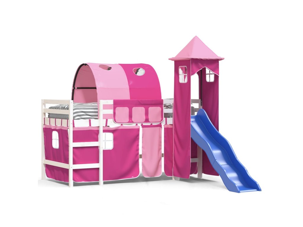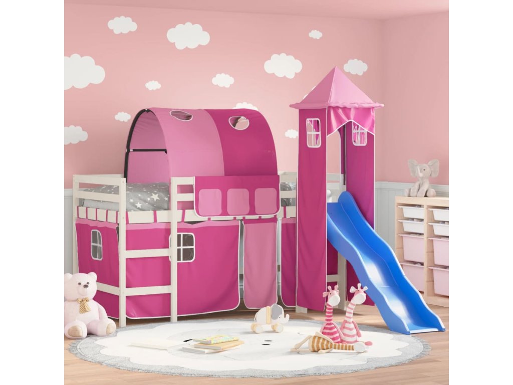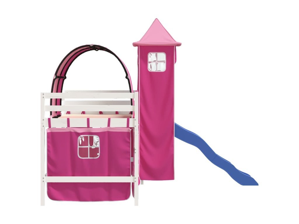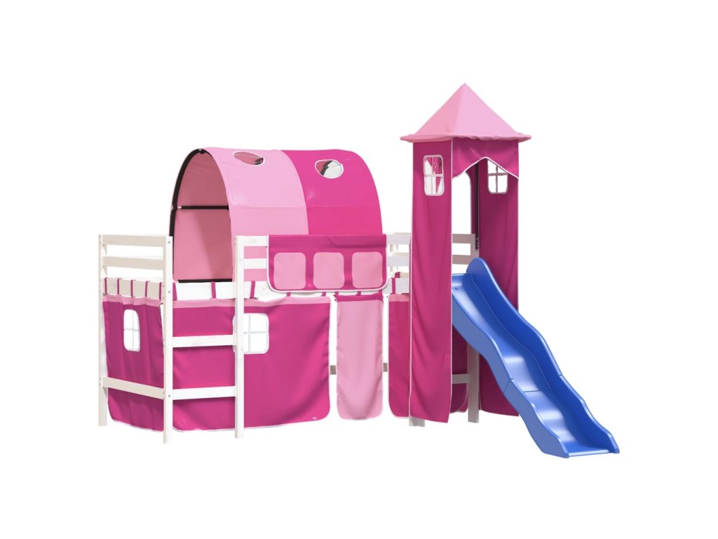 Dětská patrová postel s věží růžová 80 x 200 cm masiv borovice 3207095