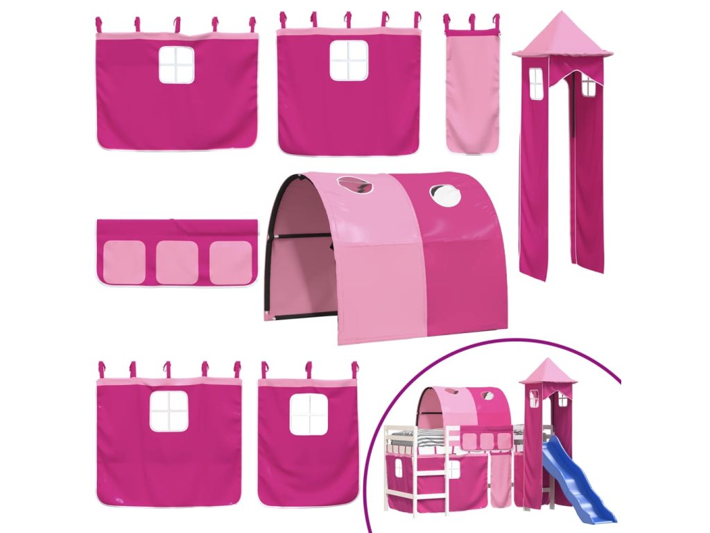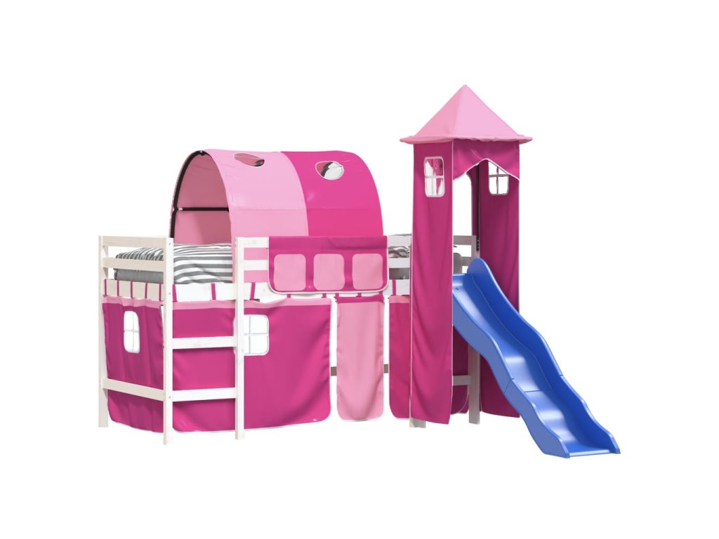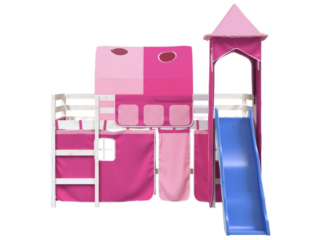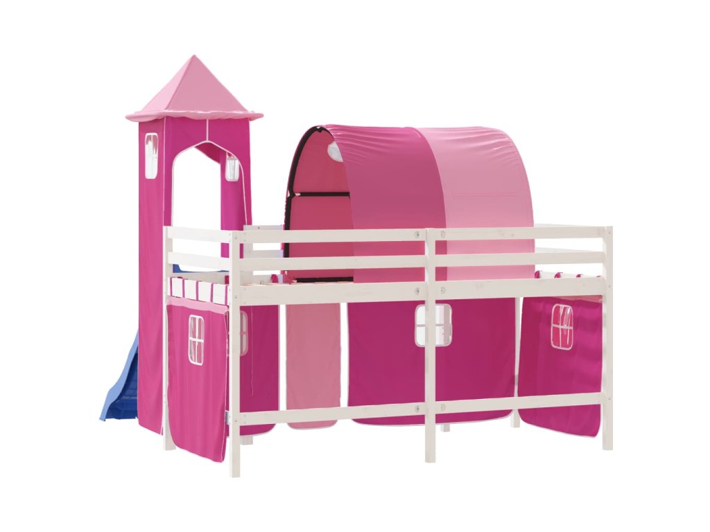 Dětská patrová postel s věží růžová 80 x 200 cm masiv borovice 3207095