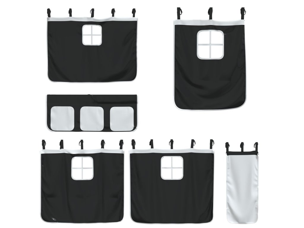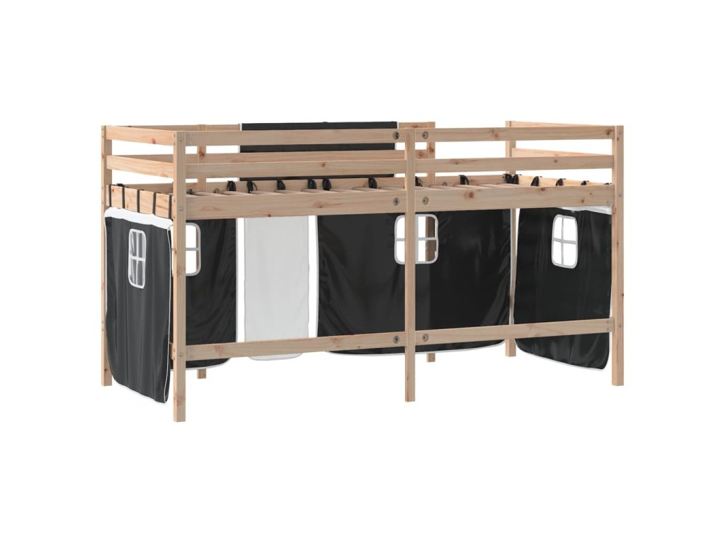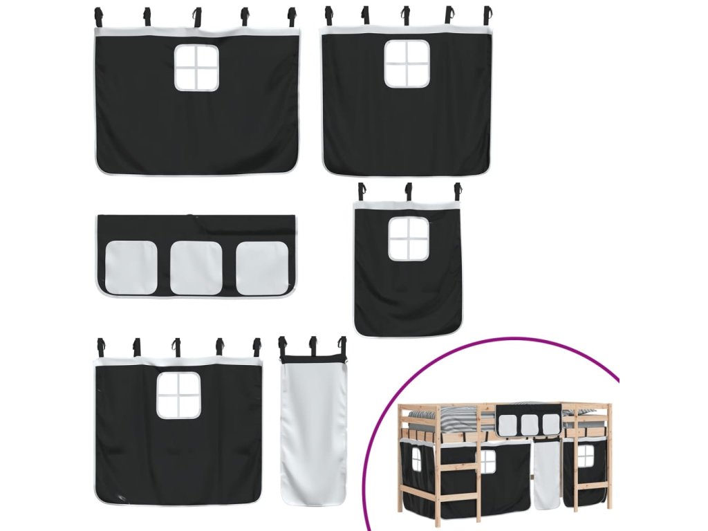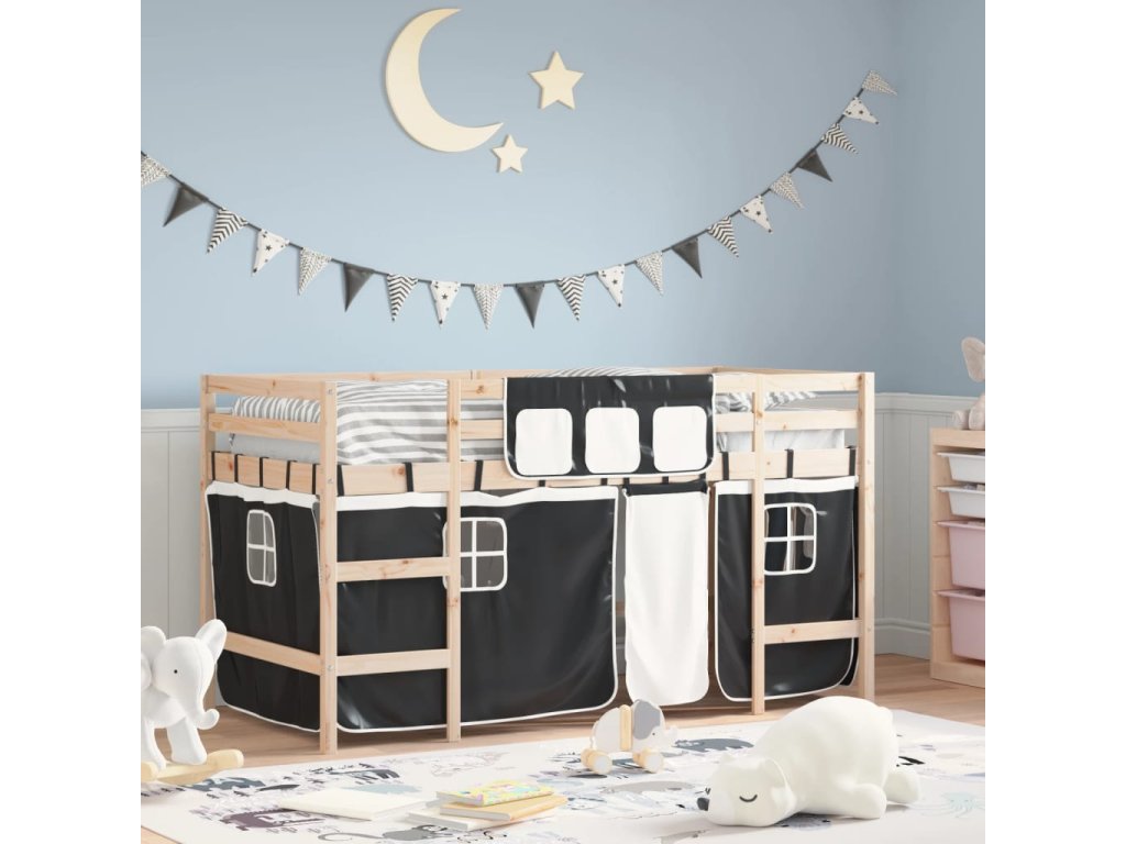 Dětská patrová postel se závěsy bílá a černá 90x190 cm borovice 3206973