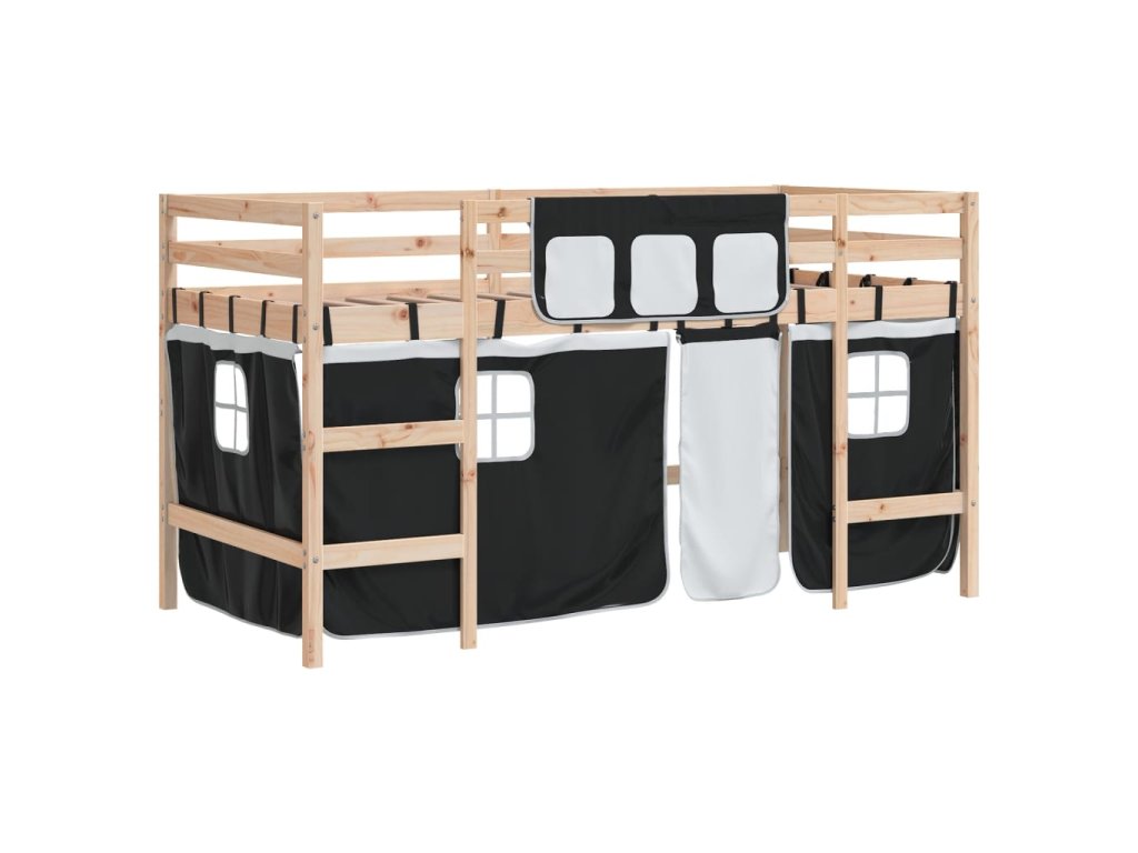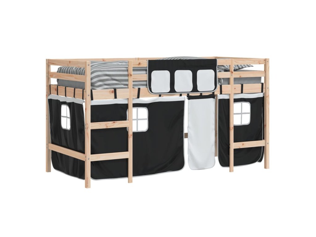 Dětská patrová postel se závěsy bílá a černá 90x200 cm borovice 3206964