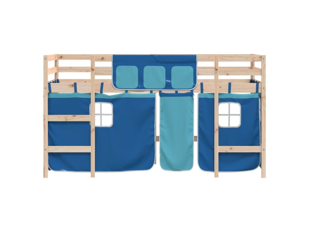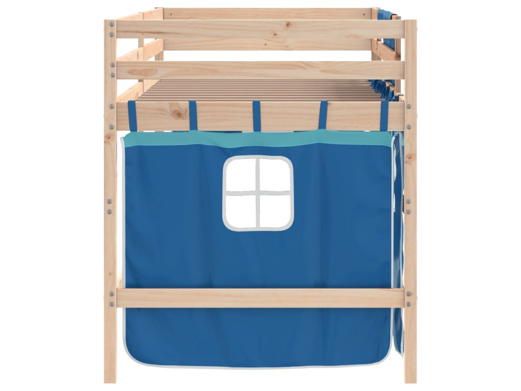 Dětská patrová postel se závěsy modrá 90 x 200 cm borovice 3206965