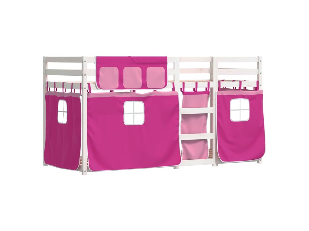 Dětská patrová postel se závěsy růžová 75 x 190 cm borovice 3283915