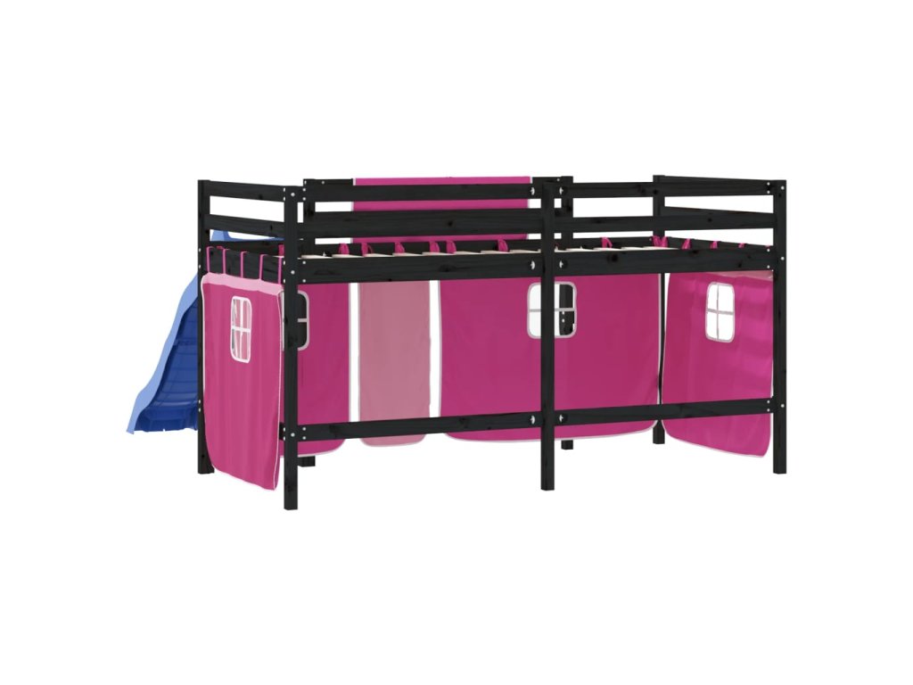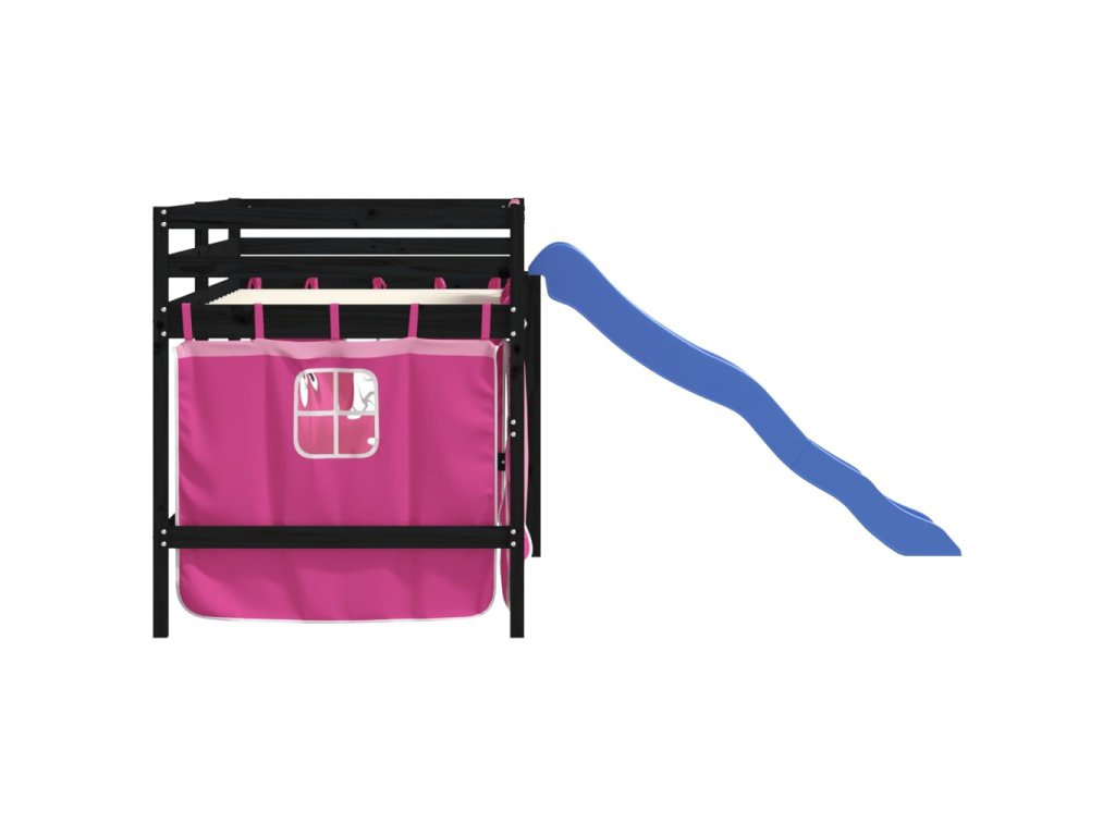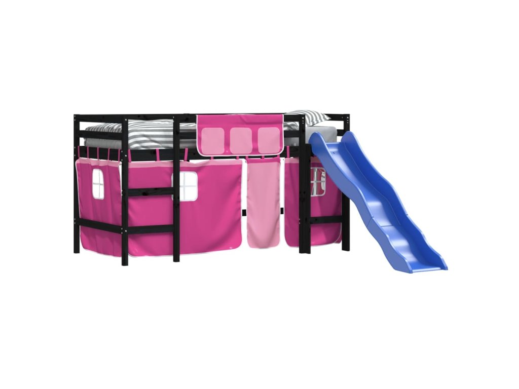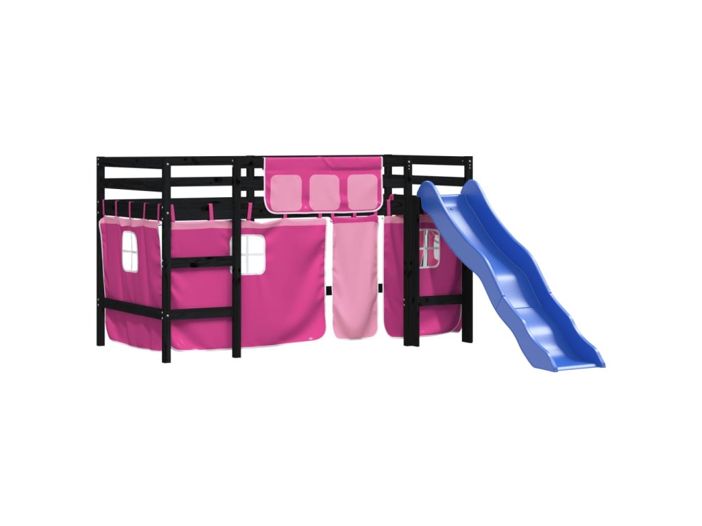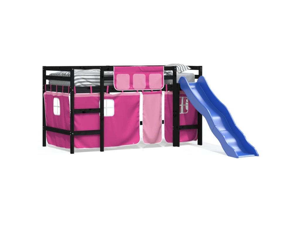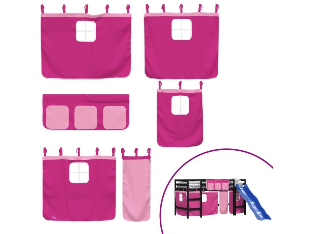 Dětská patrová postel se závěsy růžová 80 x 200 cm borovice 3207017