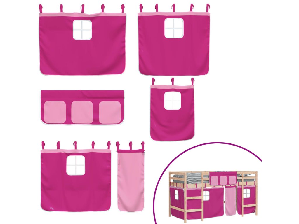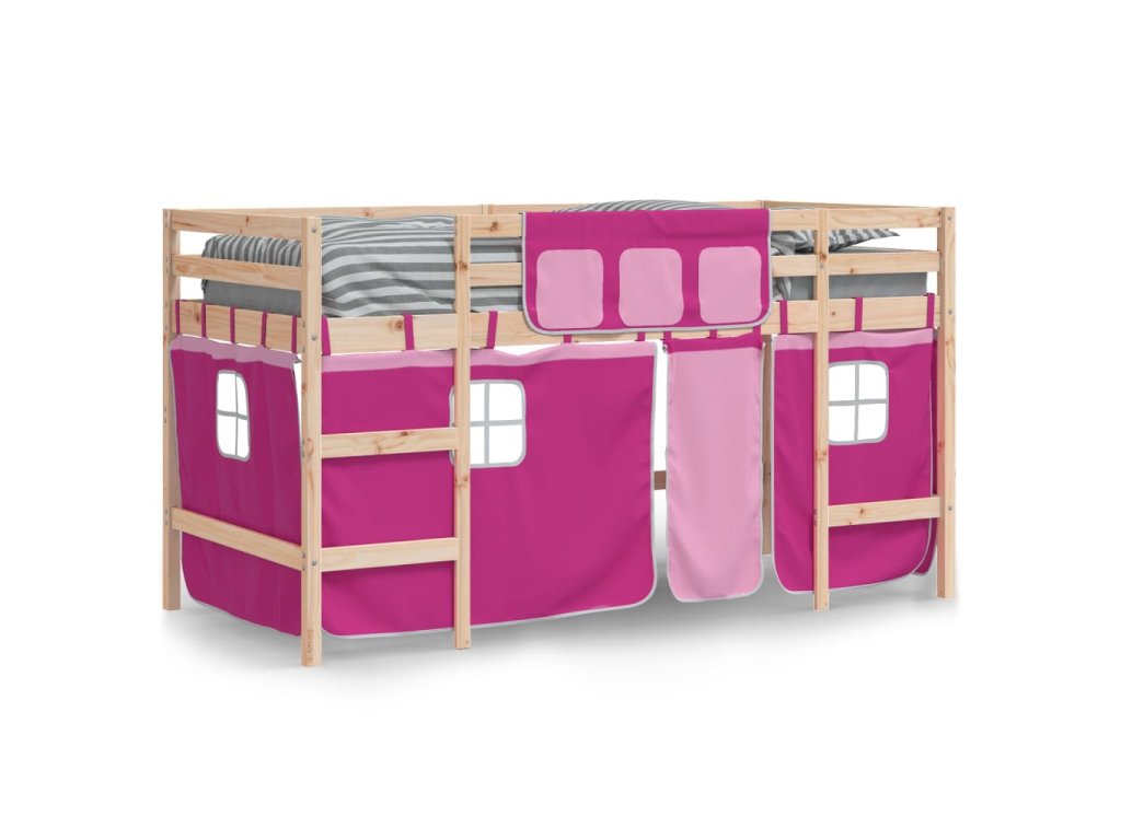 Dětská patrová postel se závěsy růžová 90 x 190 cm borovice 3206975