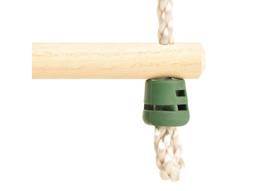 Žebřík je vyrobený z masivního dřeva a PE provazu. Je tedy dostatečně robustní, aby se na něm vaši nejmenší mohli dostatečně vyřádit. Žebřík skvěle odolává nepříznivým povětrnostním vlivům, takže ho můžete bez problémů pověsit na zahradu či na dvorek. Upevnění lezeckého provazového žebříku je řešené dvěma provazy, které jsou na koncích opatřené záchytnými oky. Ty jednoduše přichytíte k houpačce či dětské hrací věži.