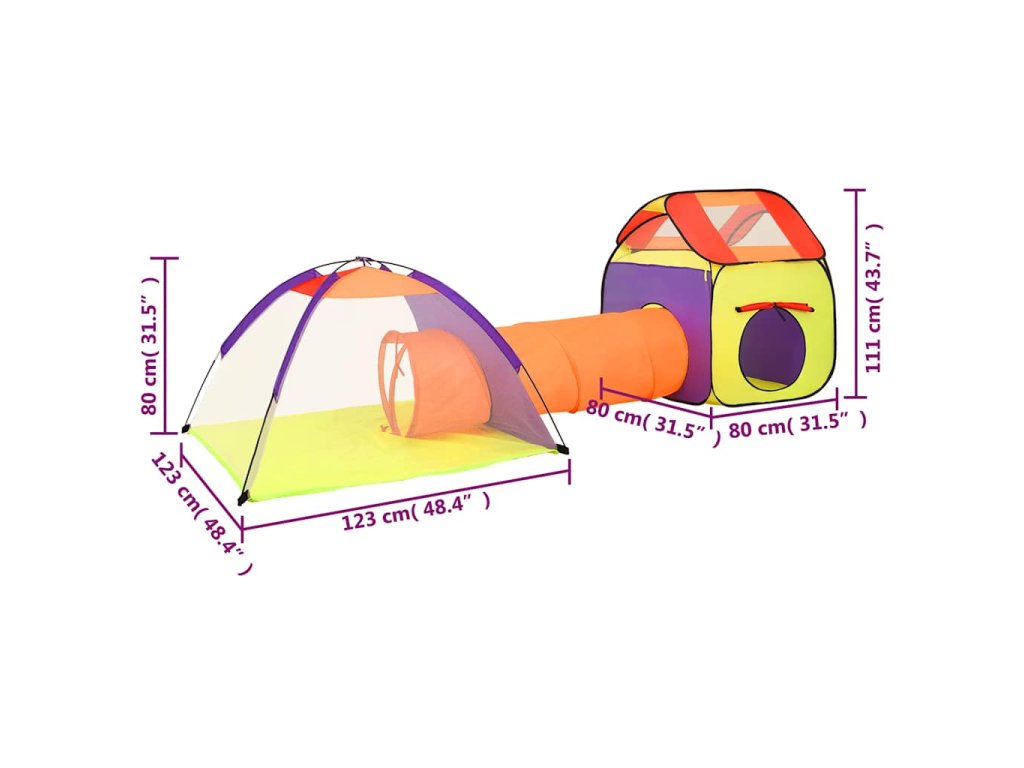 Dětský stan na hraní s 250 míčky vícebarevný 338 x 123 x 111 cm 3107730
