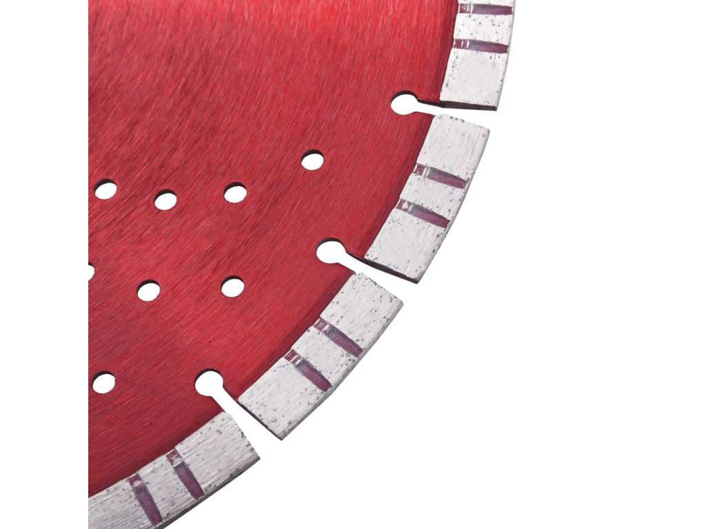 Originální turbo segmenty diamantového kotouče zaručují rychlejší řeznou rychlost a zároveň hladký řez. Prémiová ocel a diamantový materiál eliminují úbytek materiálu, a tím se prodlužuje jeho provozní životnost. Diamantový kotouč je navíc vyráběný lisováním za studena a je vhodný pro řezání za mokra i za sucha.