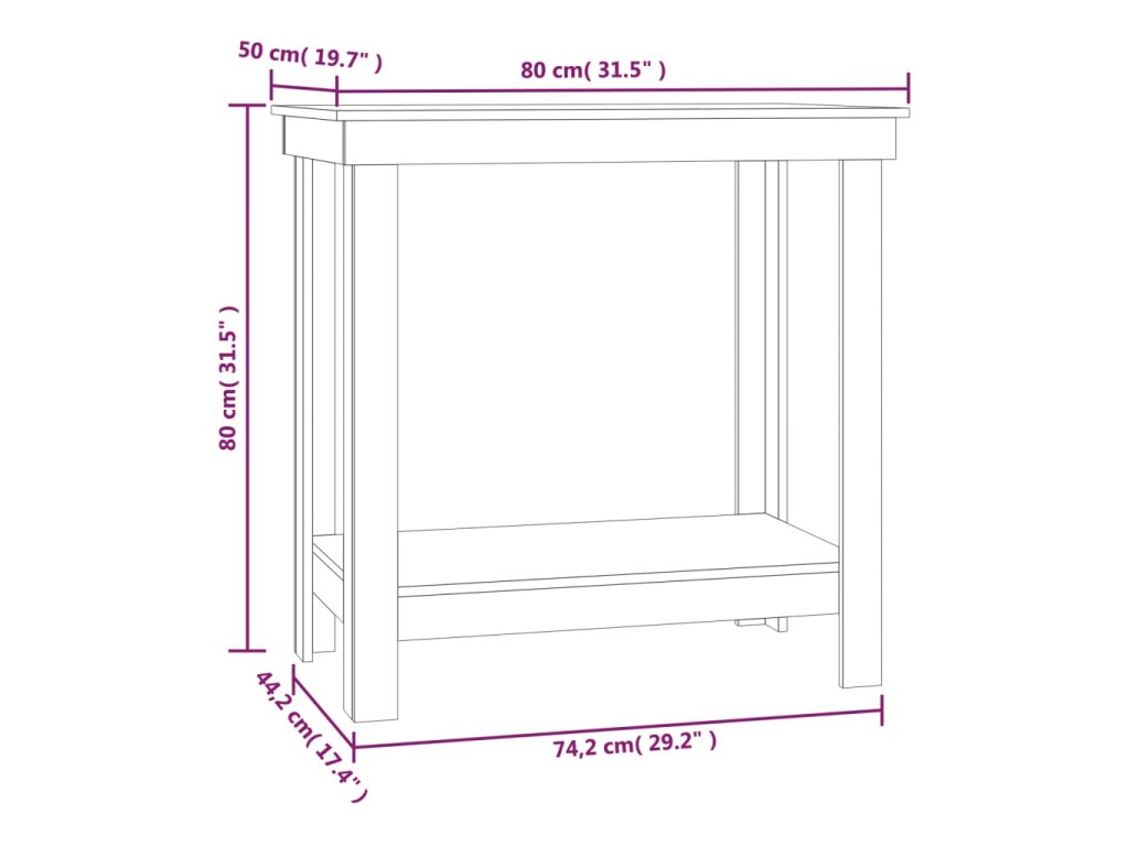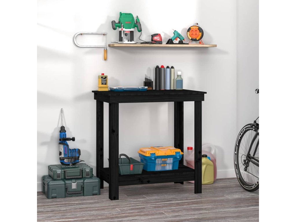 Dílenský stůl černý 80 x 50 x 80 cm masivní borovice 822500