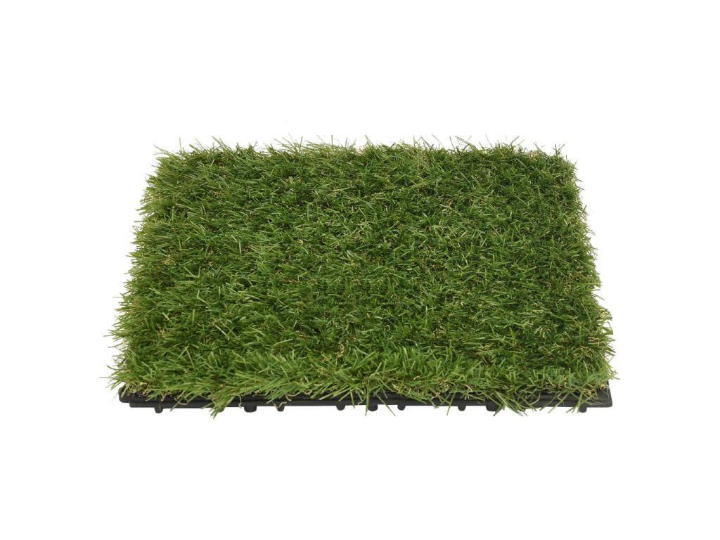 Tato velmi hustá umělá tráva se vzhledem blíží přírodní trávě a dokonale splyne s okolním prostředím. Travnaté dlaždice se velmi snadno spojují praktickým zásuvným systémem. Jsou také velmi měkké a příjemné na dotek. Výstupky na zadní straně zajišťují, že dlaždice zůstanou na svém místě.