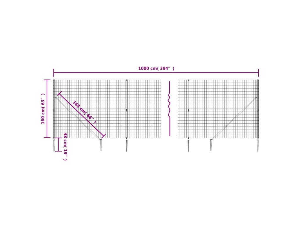 Drátěný plot s kotevními hroty antracitový 1,6 x 10 m 154260