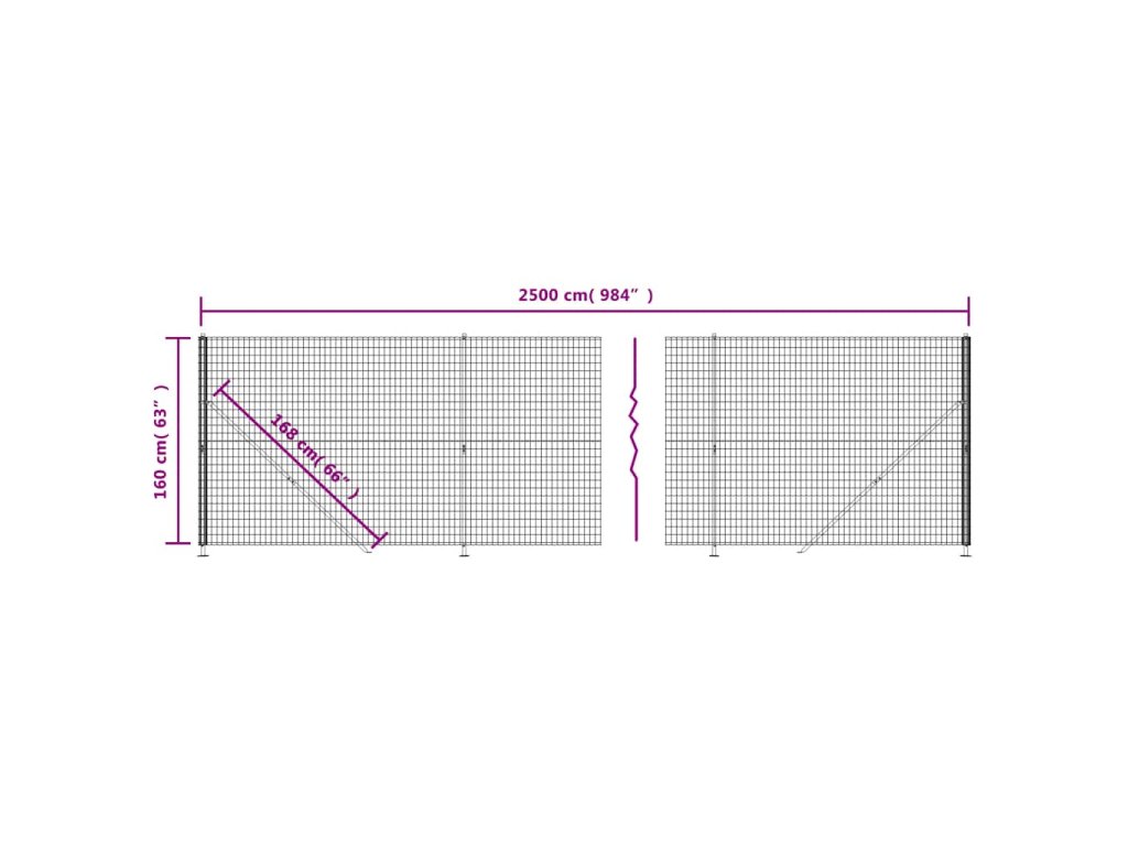 Drátěný plot s přírubami antracitový 1,6 x 25 m 154300