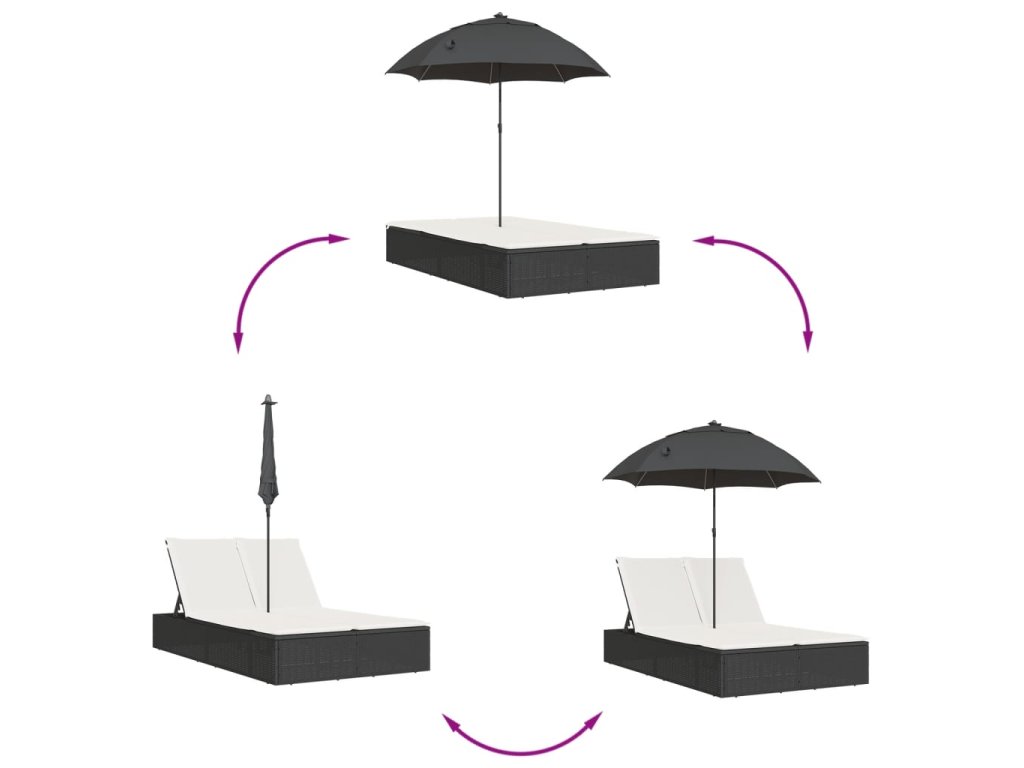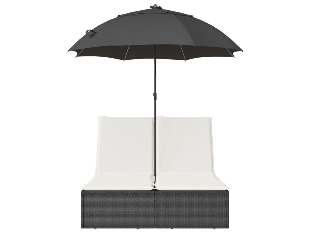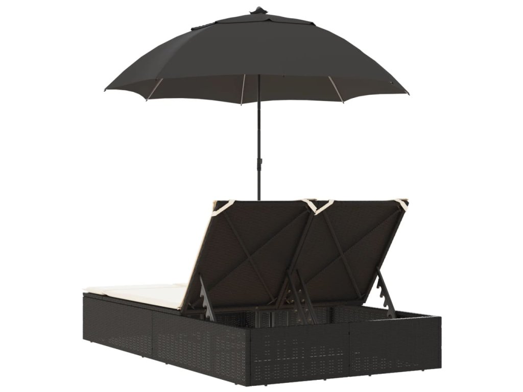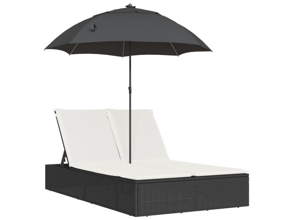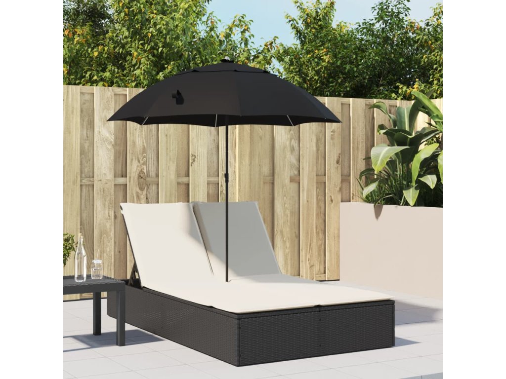 Dvojité lehátko s poduškami a slunečníkem černé polyratan 368081