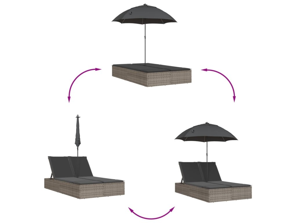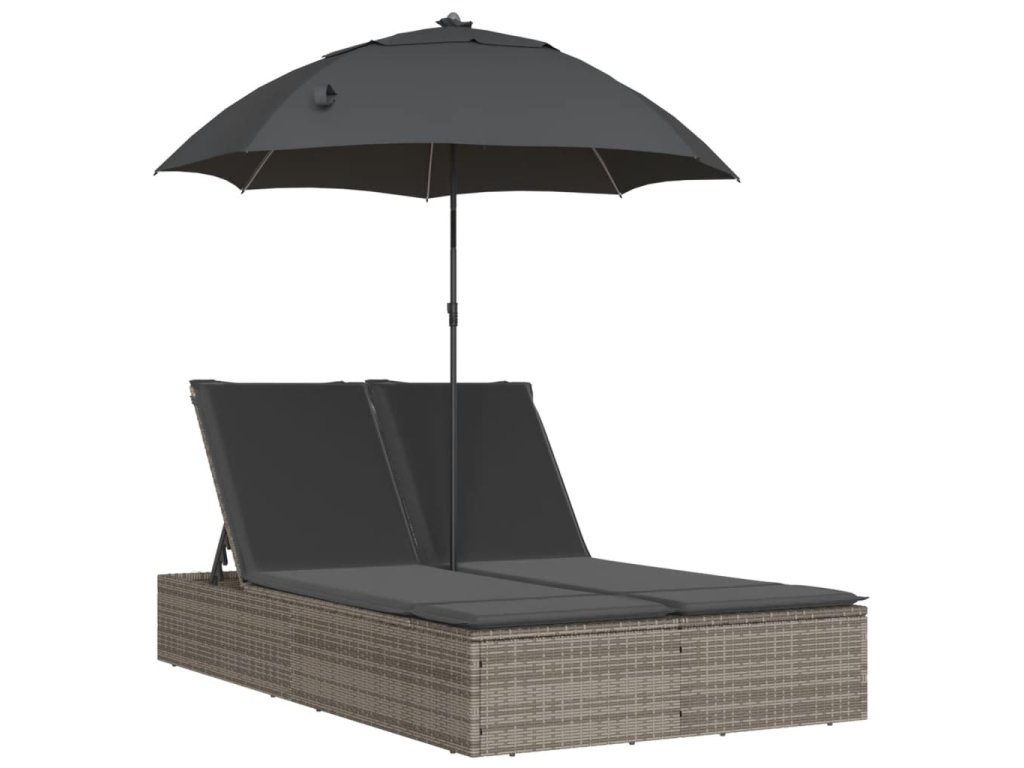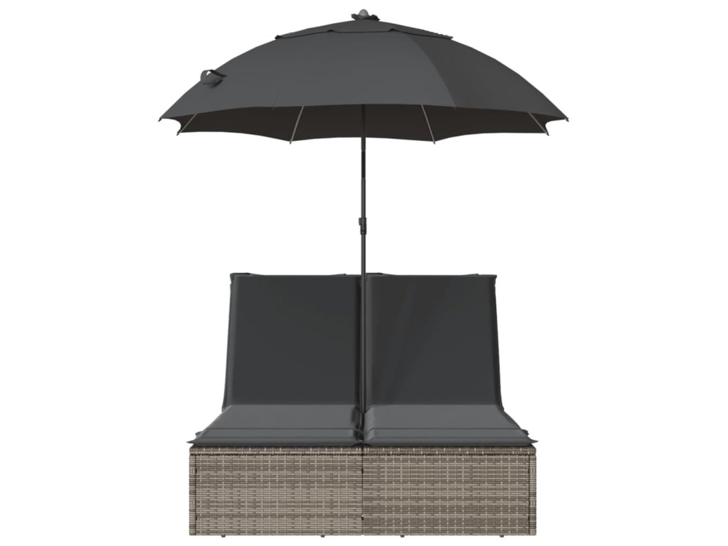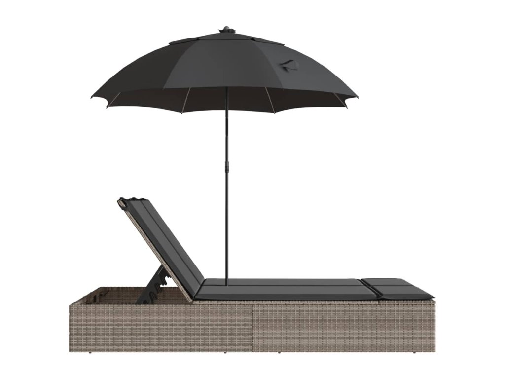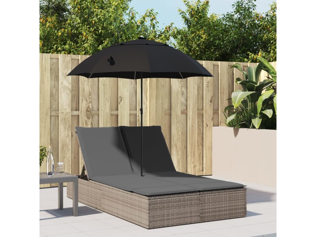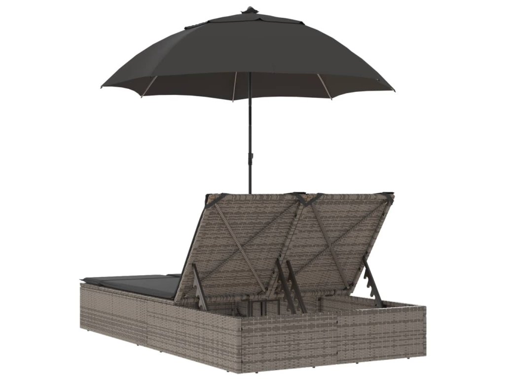 Dvojité lehátko s poduškami a slunečníkem šedé polyratan 368083