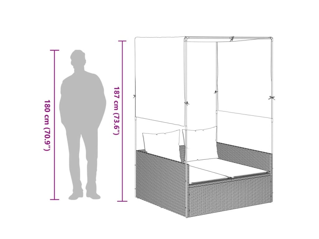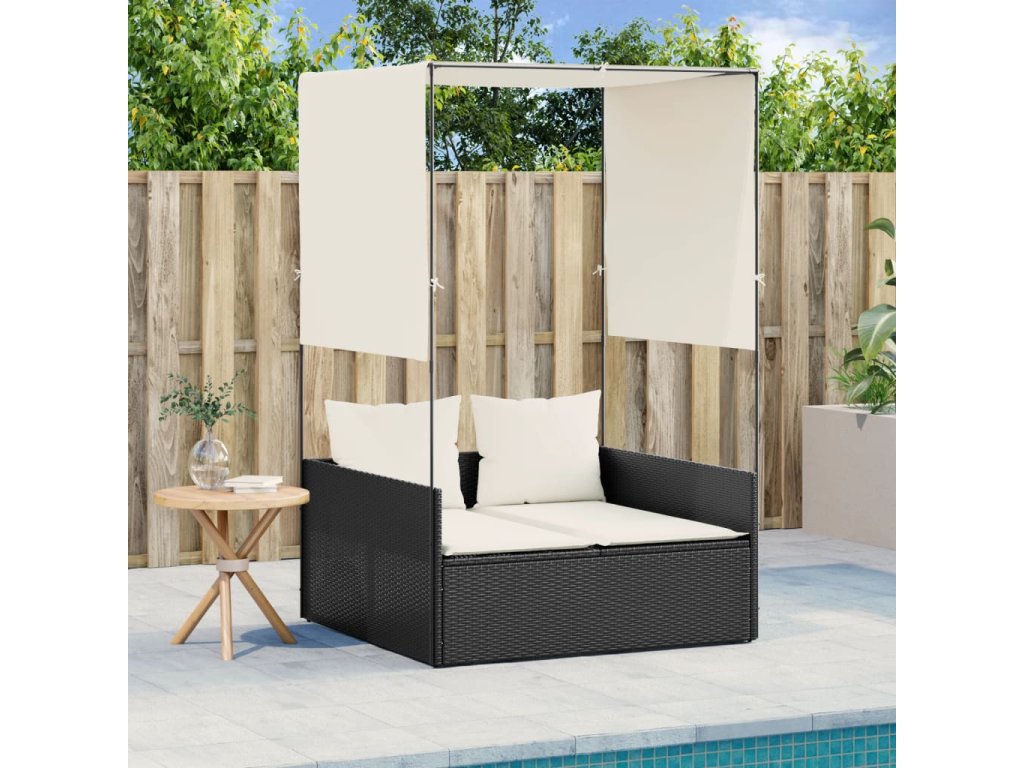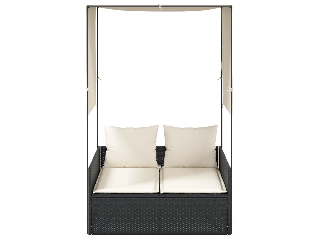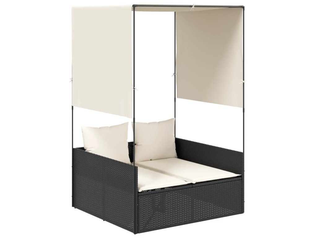 Dvojité lehátko se střechou a závěsy černé polyratan 4002755
