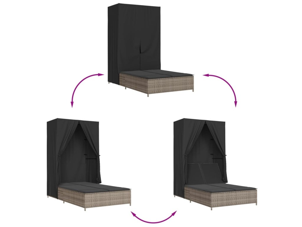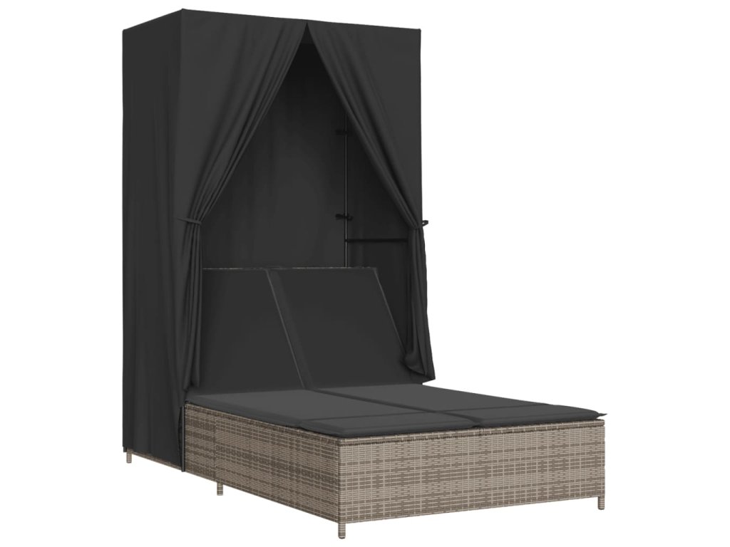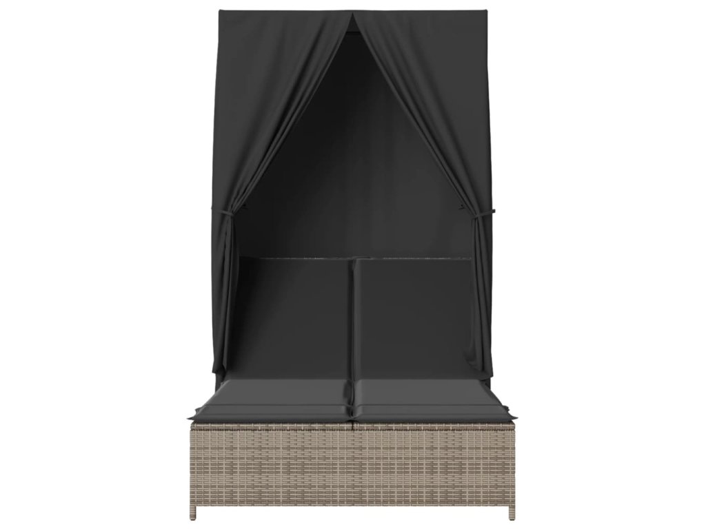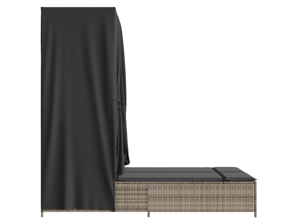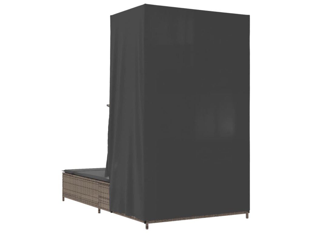 Dvojité lehátko se střechou a závěsy šedé polyratan 368101