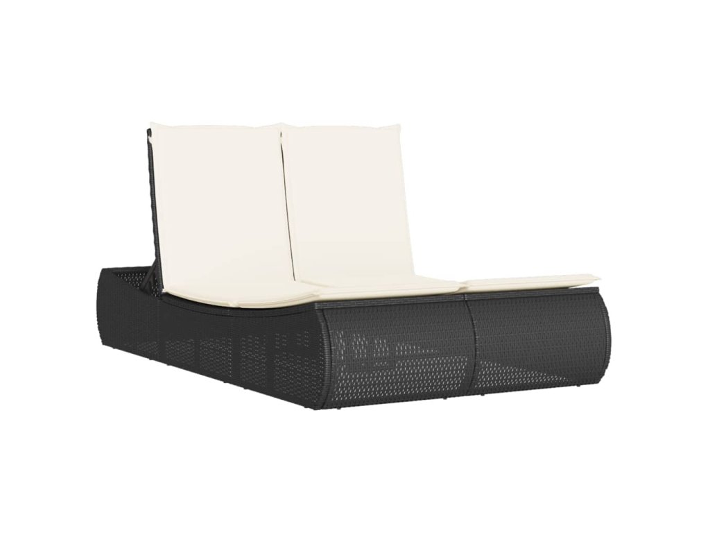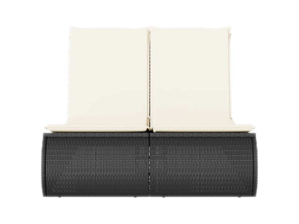 Dvojité zahradní lehátko s poduškami černé polyratan 368090