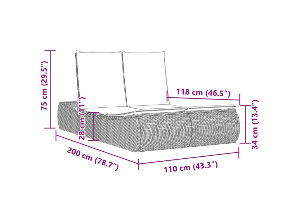- Rozměry sedáku: 110 x 178 cm (Š x H)