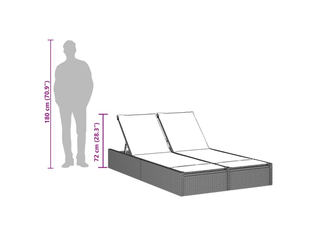 Dvojité zahradní lehátko s poduškami černé polyratan 368628