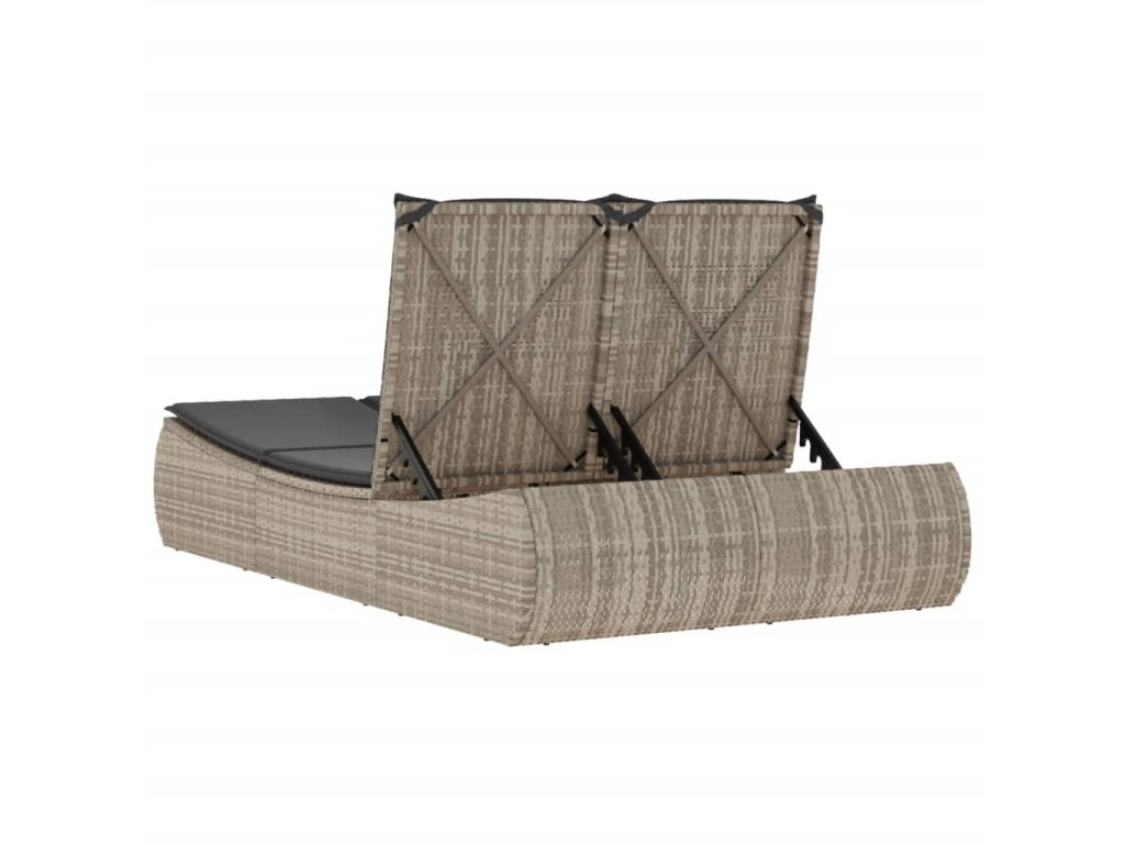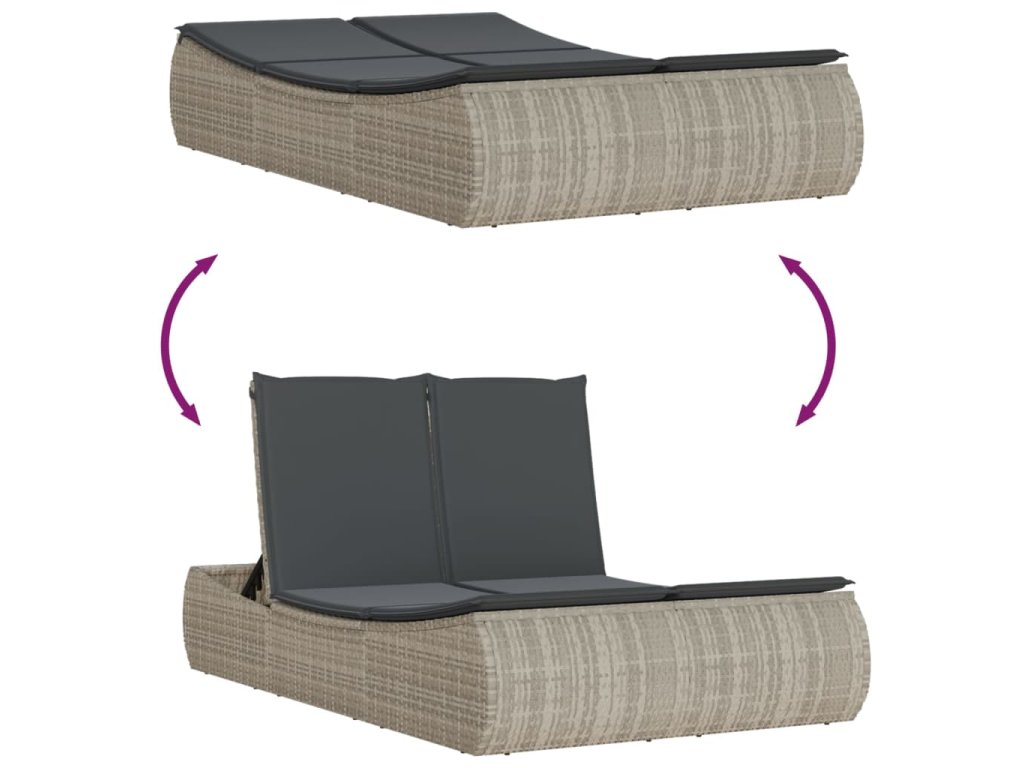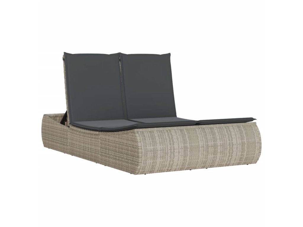 Dvojité zahradní lehátko s poduškami světle šedé polyratan 368095