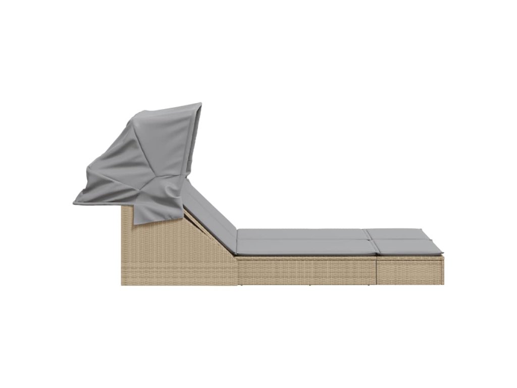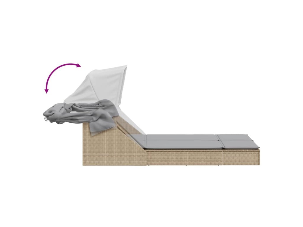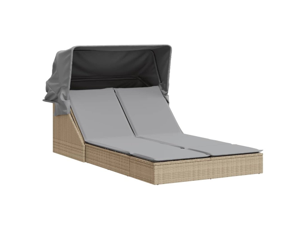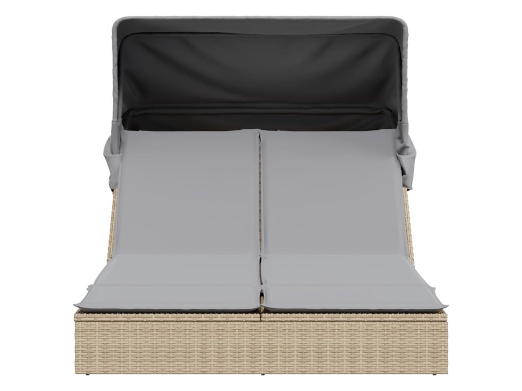 Dvojité zahradní lehátko se stříškou a podušky béžové polyratan 368640