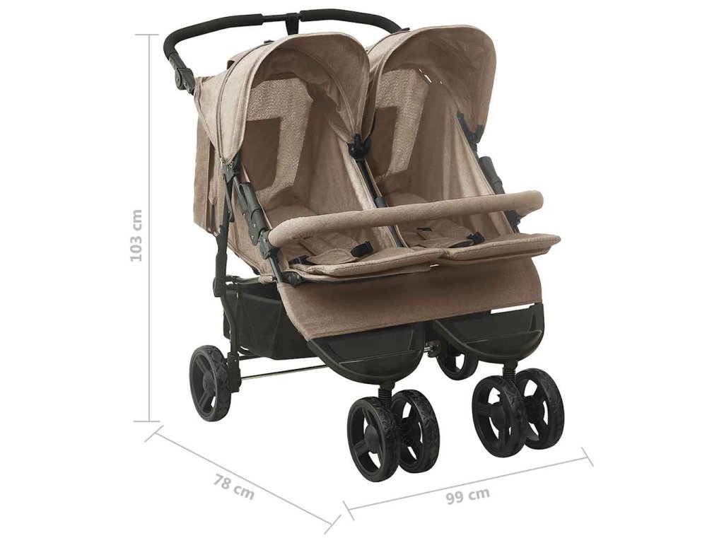Dvojitý kočárek taupe ocel 10243