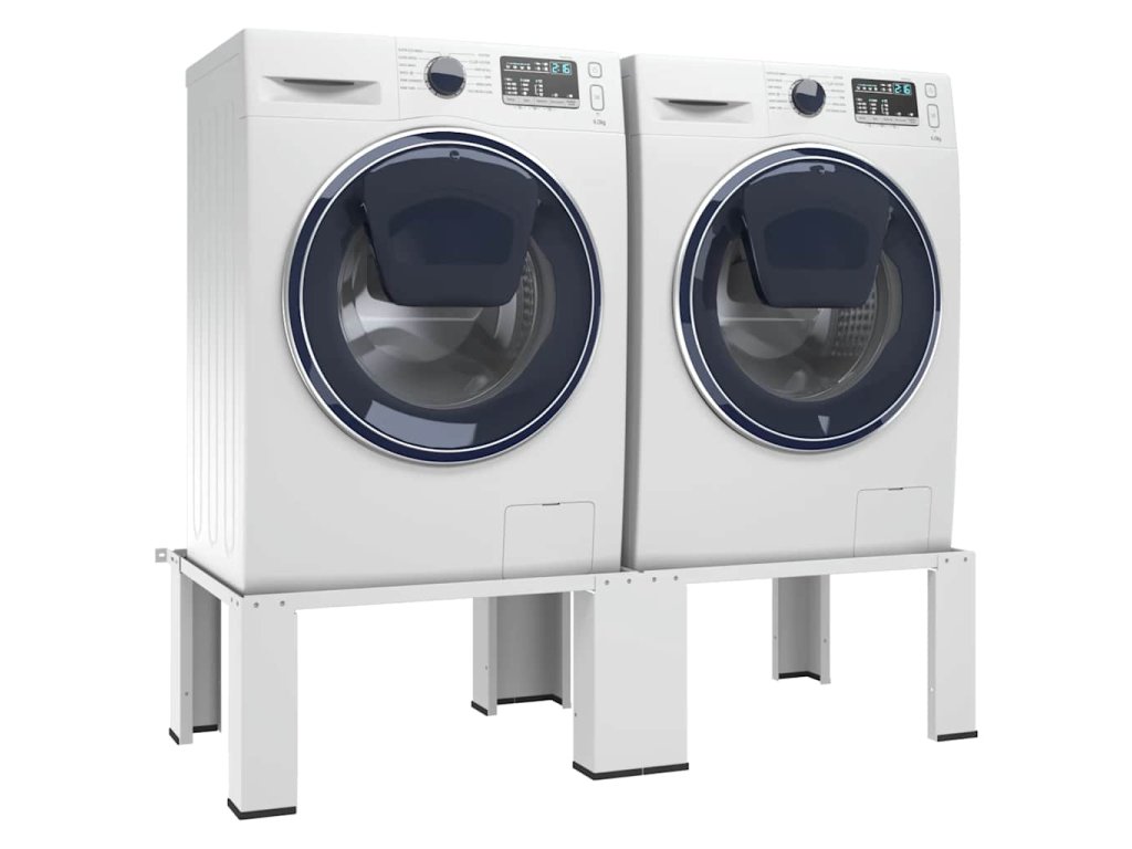 Tento podstavec je vyrobený z odolné oceli, je velmi robustní a každý z nich unese pračku nebo sušičku až do hmotnosti 100 kg. Protiskluzové podložky zaručují stabilitu stojanu pod pračku a sušičku. Nohy jsou rovněž pogumované, takže nekloužou a zároveň chrání vaši podlahu před poškrábáním.