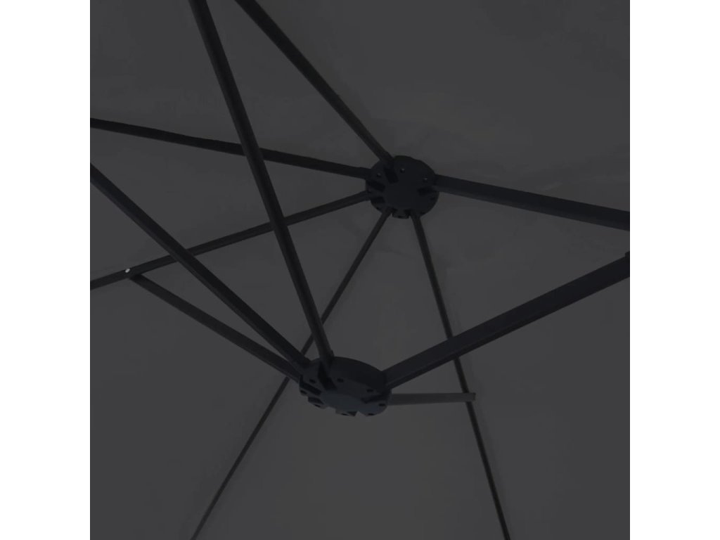 - Robustní rám: Jelikož je vybaven silnou železnou tyčí s práškovým nástřikem a odolnými žebry, je tento zahradní slunečník velmi stabilní a pevný.
