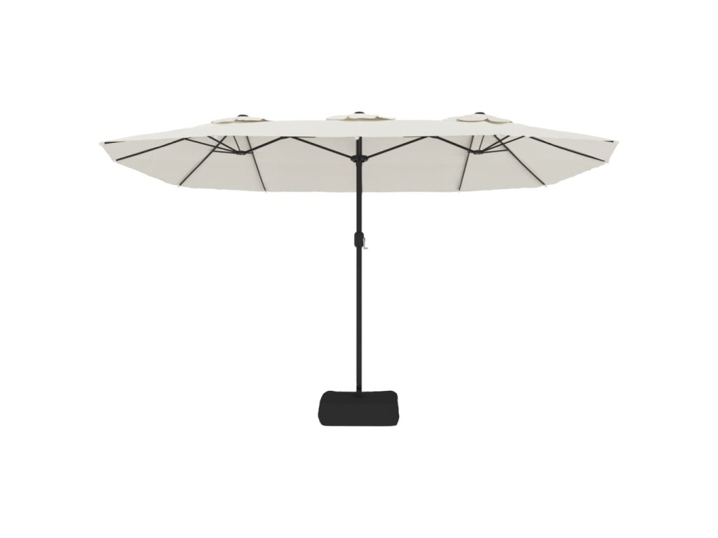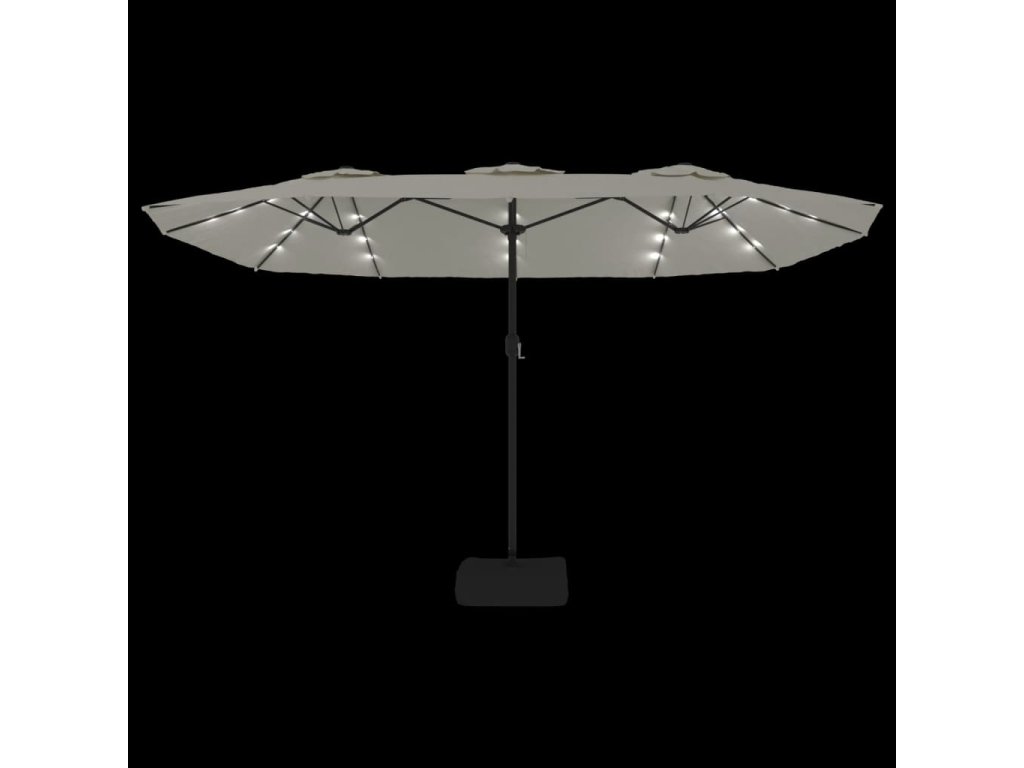 Dvojitý zahradní slunečník s LED pískově bílý 449 x 265 cm 362953