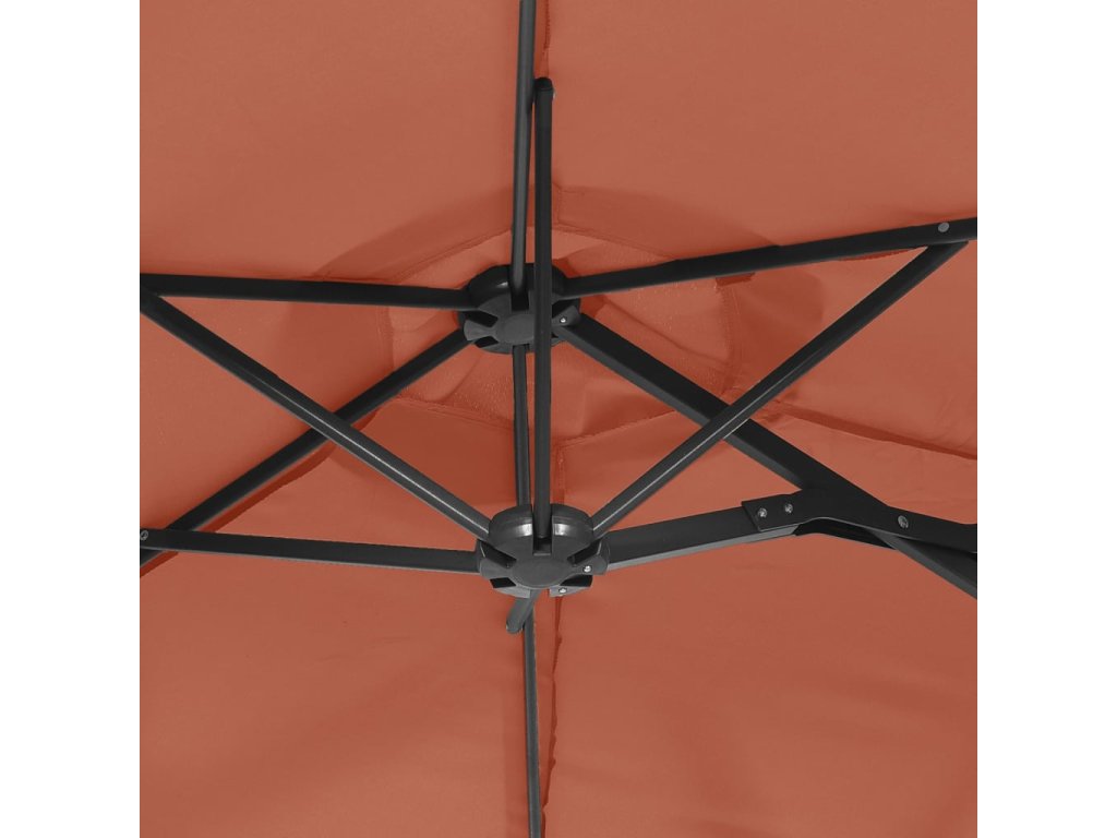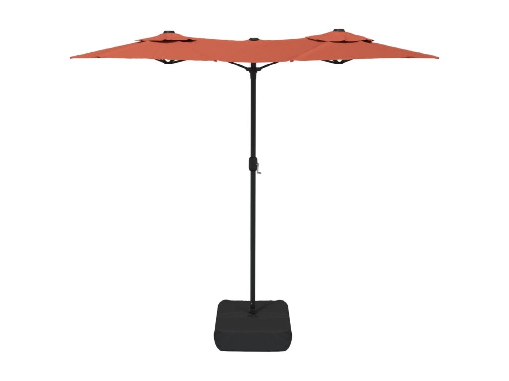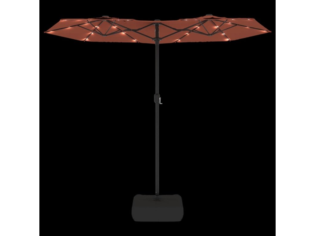 Dvojitý zahradní slunečník s LED terakotový 316 x 145 cm 362974