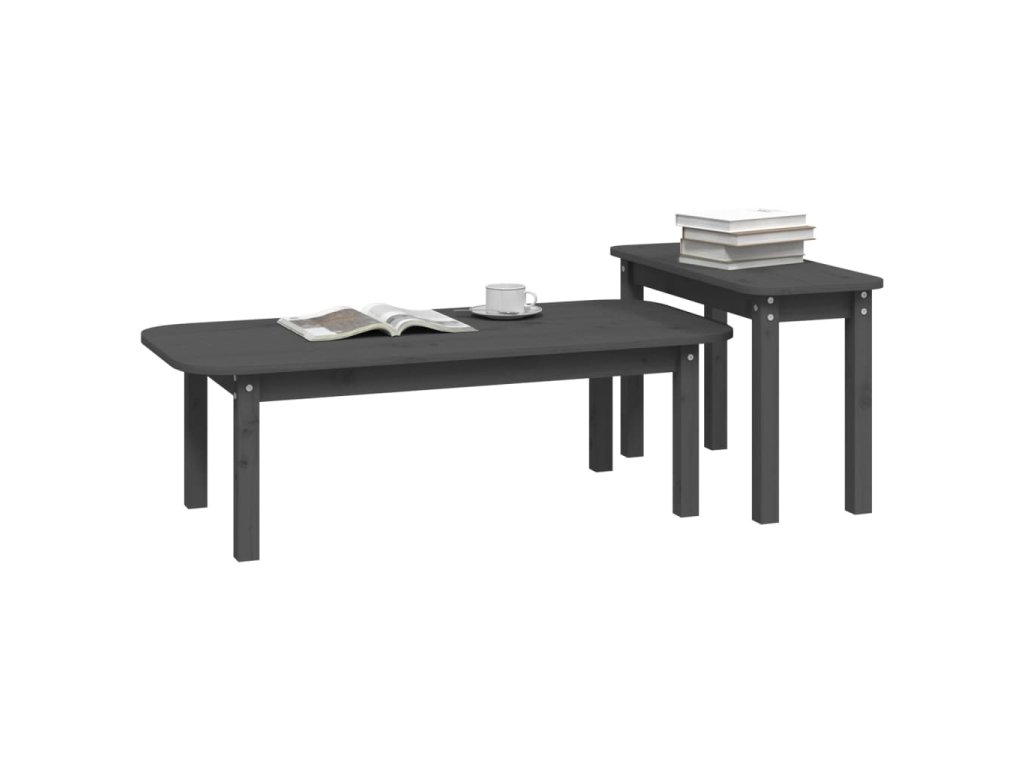 Dvoudílná sada konferenčních stolků šedá masivní borové dřevo 822364