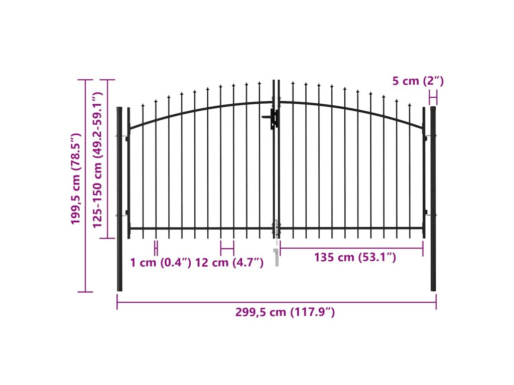 Dvoukřídlá zahradní brána s hroty ocelová 3 x 1,5 m černá 146028