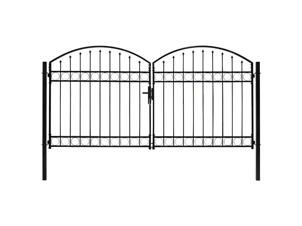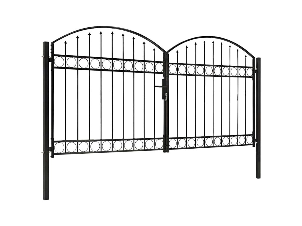 Dvoukřídlá zahradní brána s obloukem ocelová 300 x 150 cm černá 143090