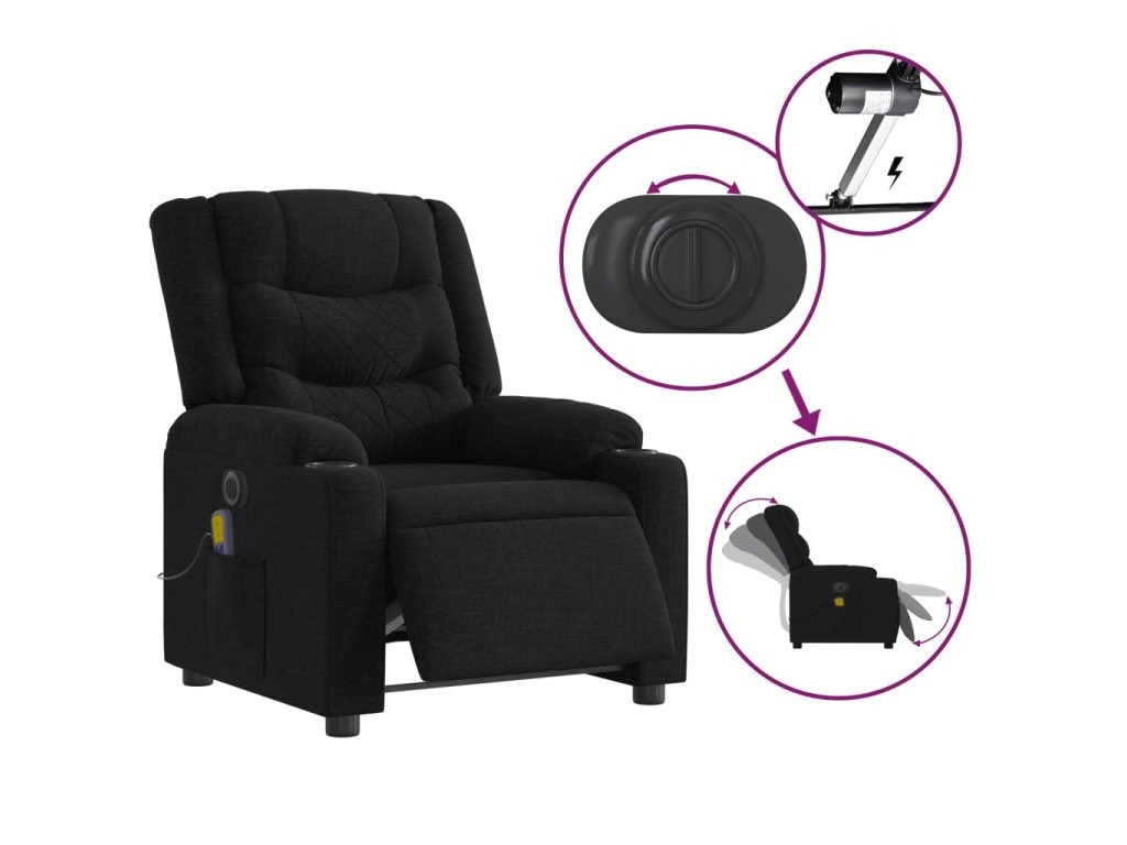 Elektrické masážní polohovací křeslo černé textil 3206572