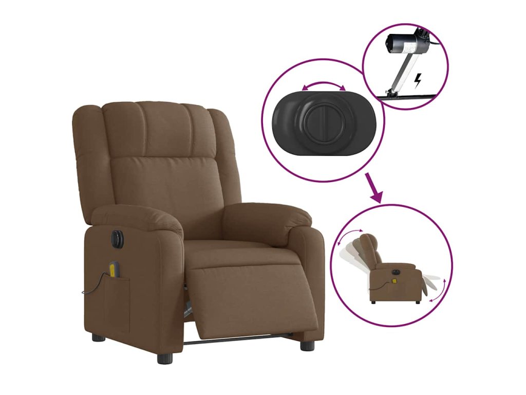 Elektrické masážní polohovací křeslo hnědé textil 3205194